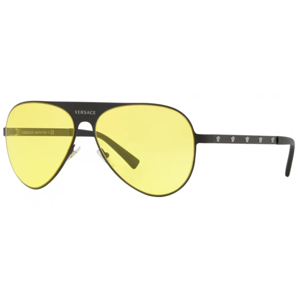 The Medusa aviator sunglasses with matte black frame, yellow lenses and Medusa studs are a real must-have signed by Versace.