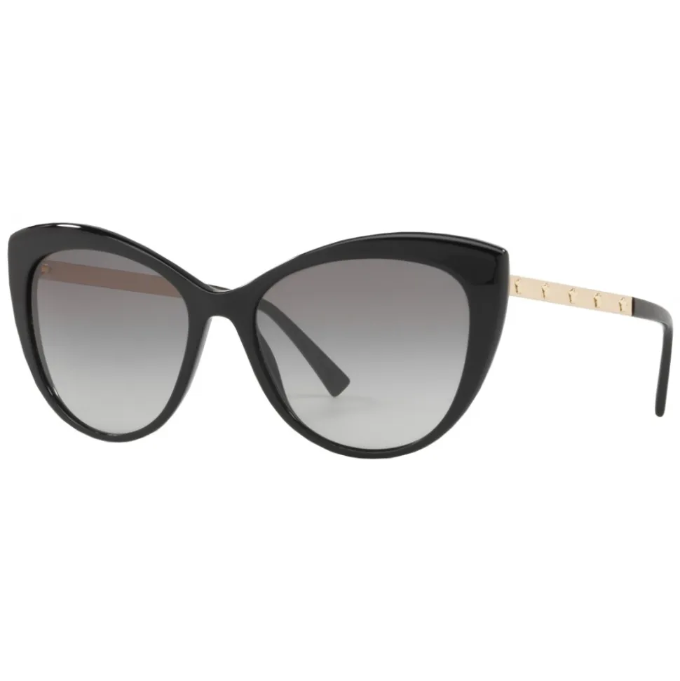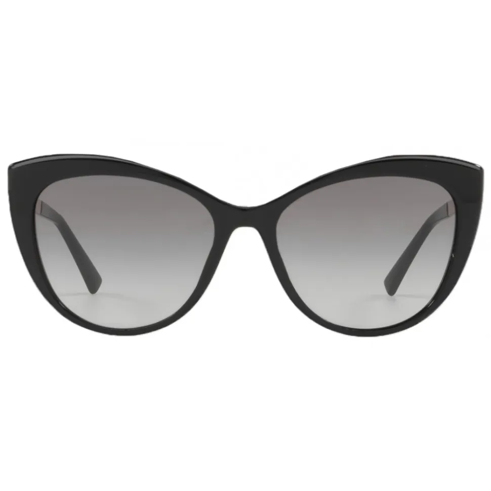 A bold cat eye model that never goes out of style. Medusina cat eye sunglasses with thick gray frame and gradient lenses.