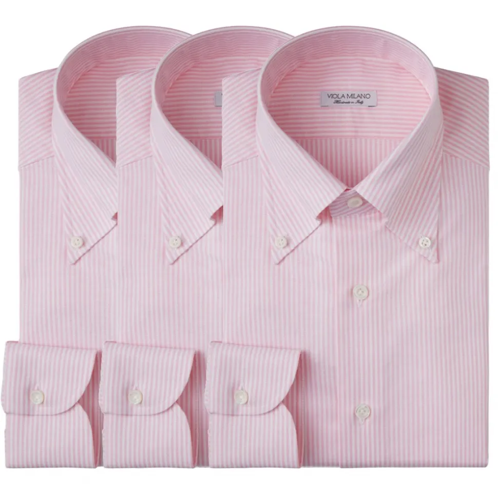 Viola Milano – 3 Oxford Stripe Package Button-Down Collar Shirt – Pink/White – Handmade in Italy – Luxury Exclusive Collection