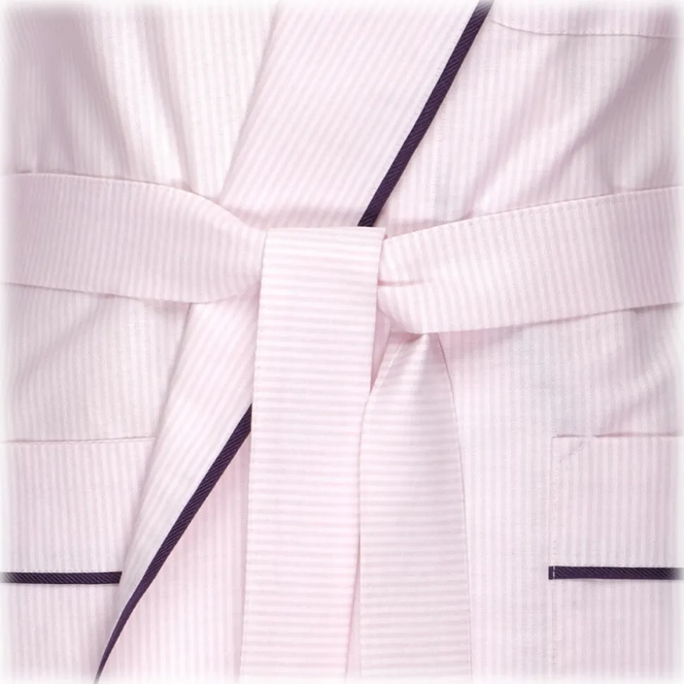 Viola Milano – American Oxford Stripe Dressing Gown – Pink and White – Handmade in Italy – Luxury Exclusive Collection