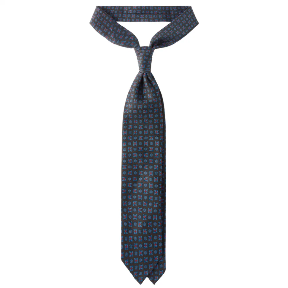 Viola Milano – Artisan Floral Handprinted Ancient Madder Silk Tie – Brown – Made in Italy – Luxury Exclusive Collection