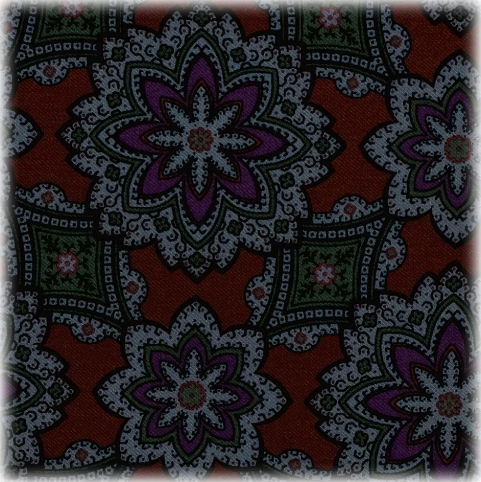 Viola Milano – Artisan Floral Silk Pocket Square – Brown Mix – Handmade in Italy – Luxury Exclusive Collection