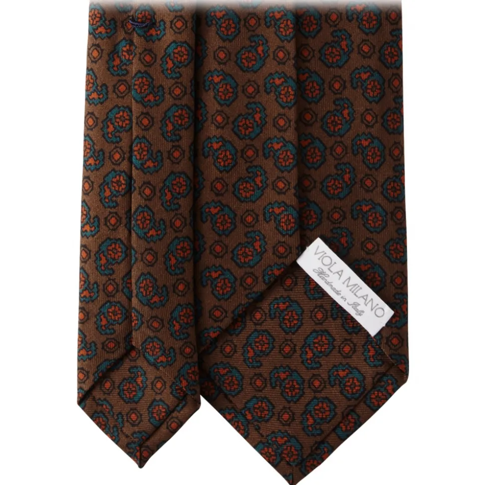 Viola Milano – Autumn Paisley Selftipped Italian Silk Tie – Bronze – Handmade in Italy – Luxury Exclusive Collection