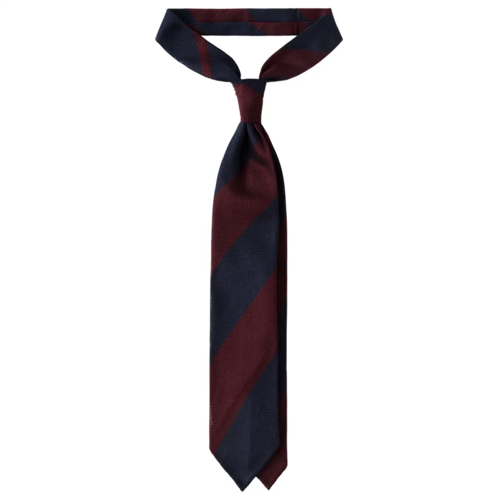 Viola Milano – Block Stripe 3-fold Grenadine Tie – Navy Wine – Made in Italy – Luxury Exclusive Collection