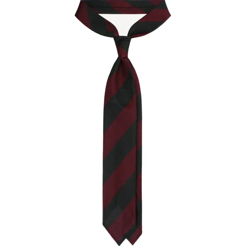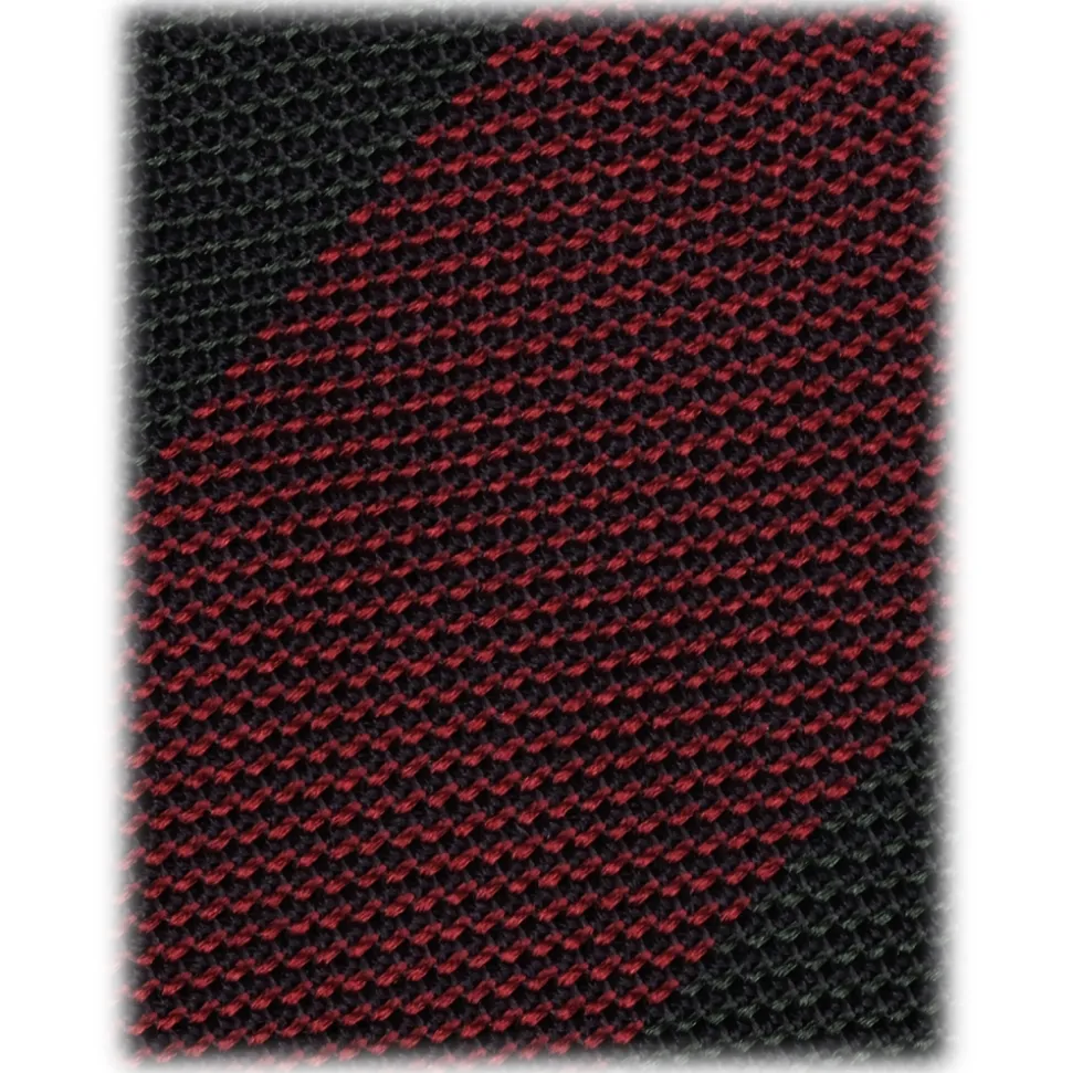 Viola Milano – Block Stripe 3-Fold Grenadine Tie – Red/Forest – Handmade in Italy – Luxury Exclusive Collection