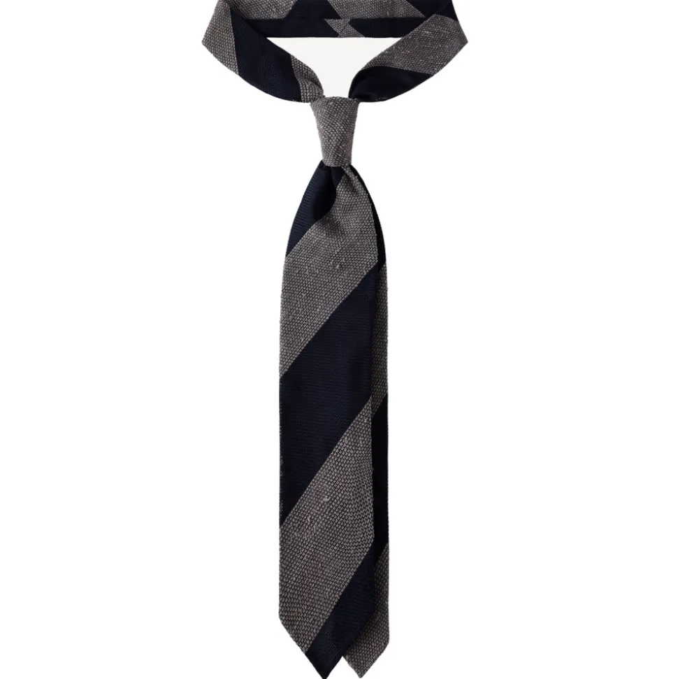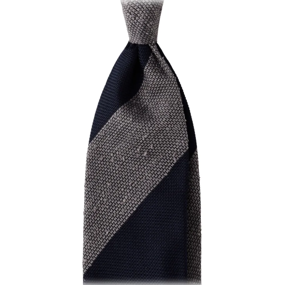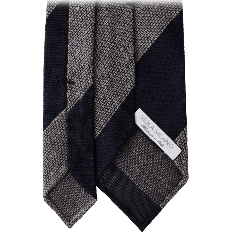 Viola Milano – Block Stripe Handrolled Woven Grenadine/Shantung Tie – Navy/Grey – Handmade in Italy – Luxury Exclusive Collection