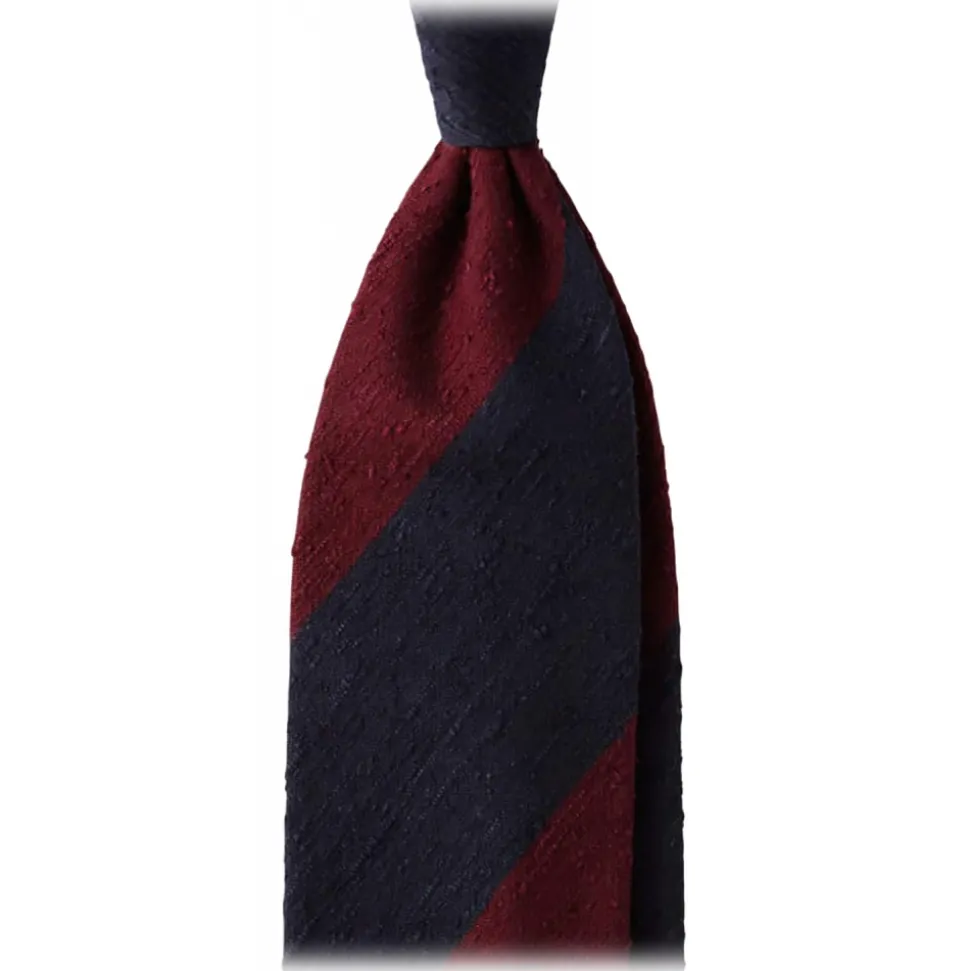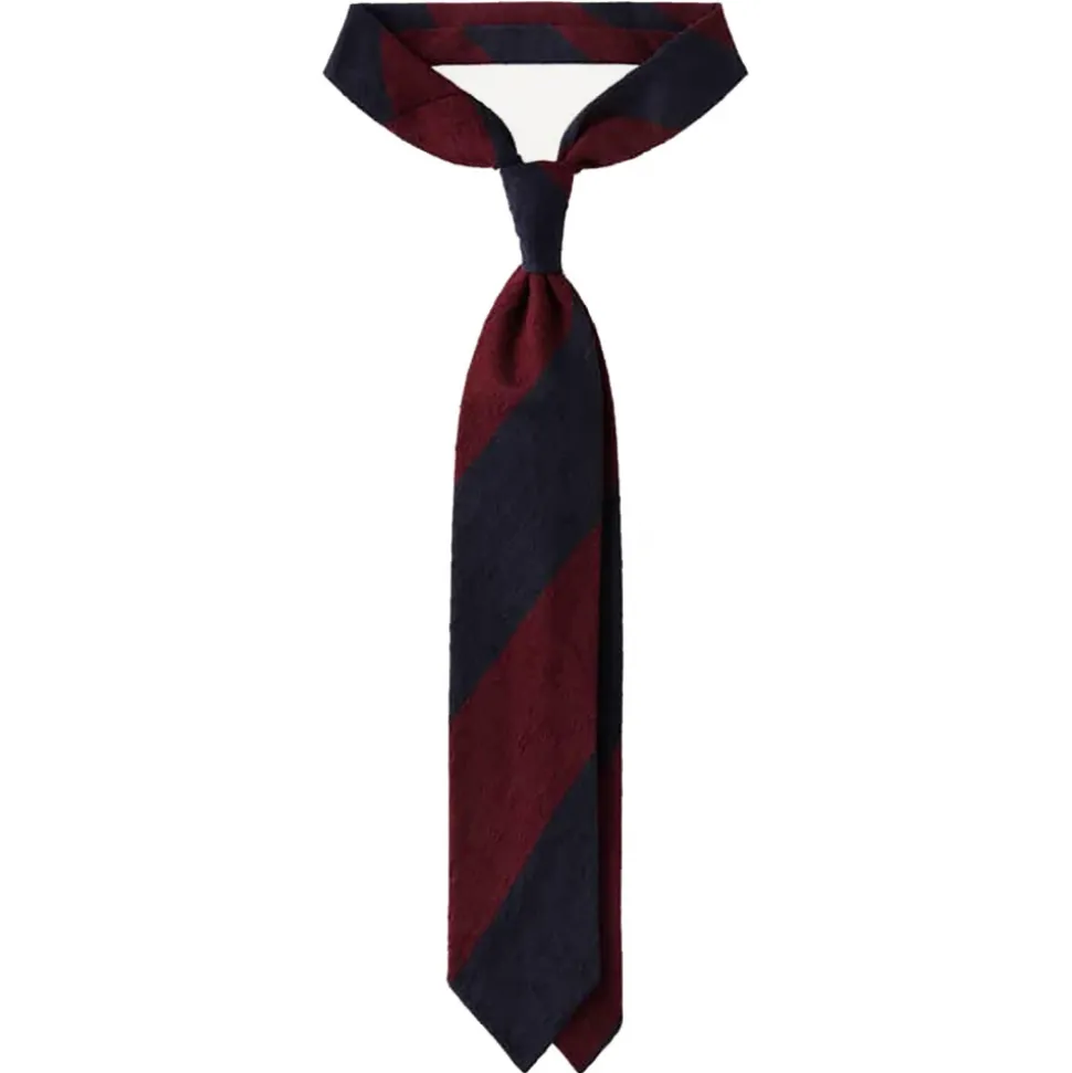 Viola Milano – Block Stripe Handrolled Woven Shantung Tie – Navy/Wine – Handmade in Italy – Luxury Exclusive Collection