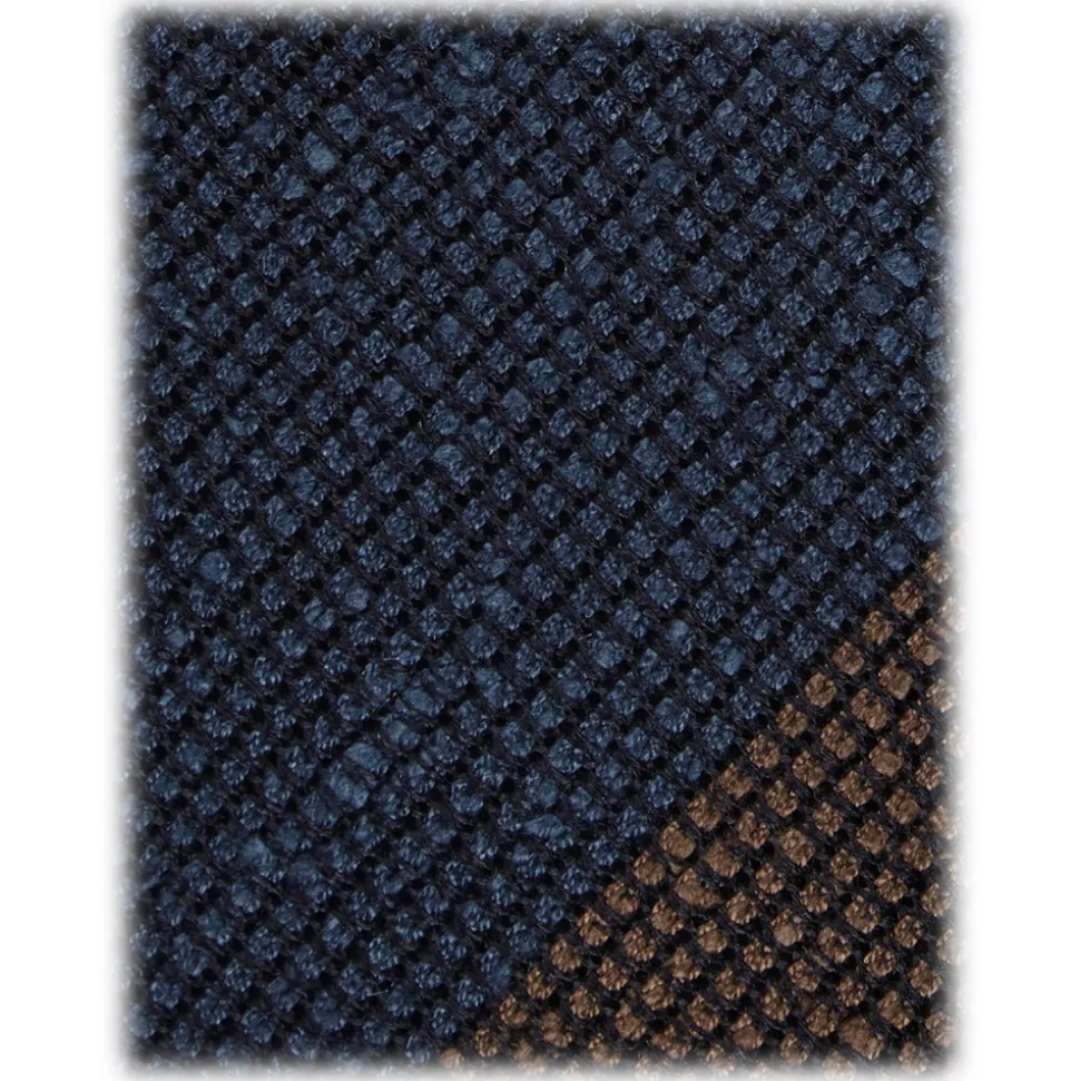 Viola Milano – Block Stripe Handrolled Woven Grenadine/Shantung Tie – Navy/Brown – Handmade in Italy – Luxury Exclusive Collection
