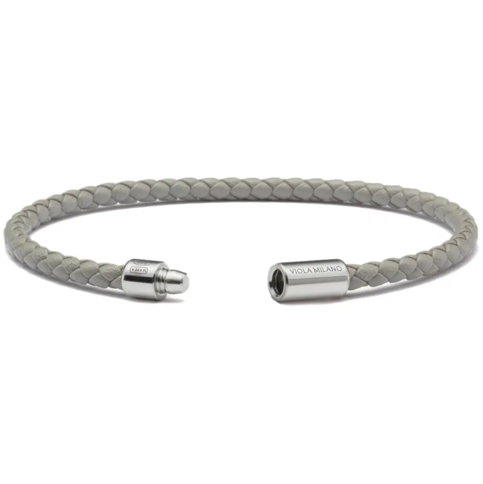 Viola Milano – Braided Italian Leather Bracelet – Grey – Handmade in Italy – Luxury Exclusive Collection