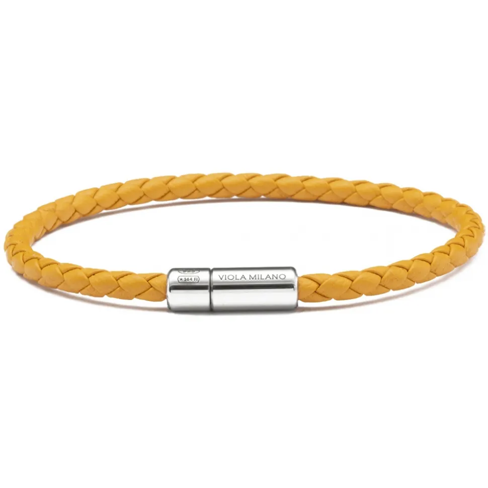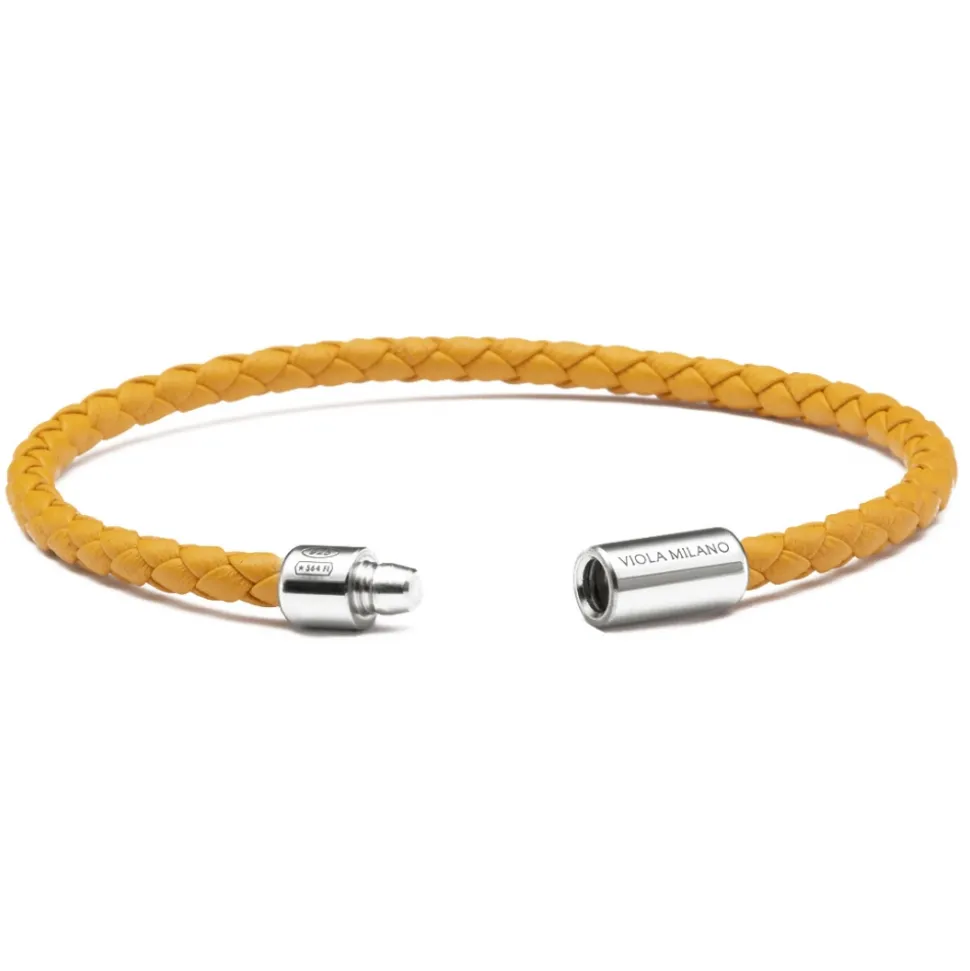 Viola Milano – Braided Italian Leather Bracelet – Mustard – Handmade in Italy – Luxury Exclusive Collection