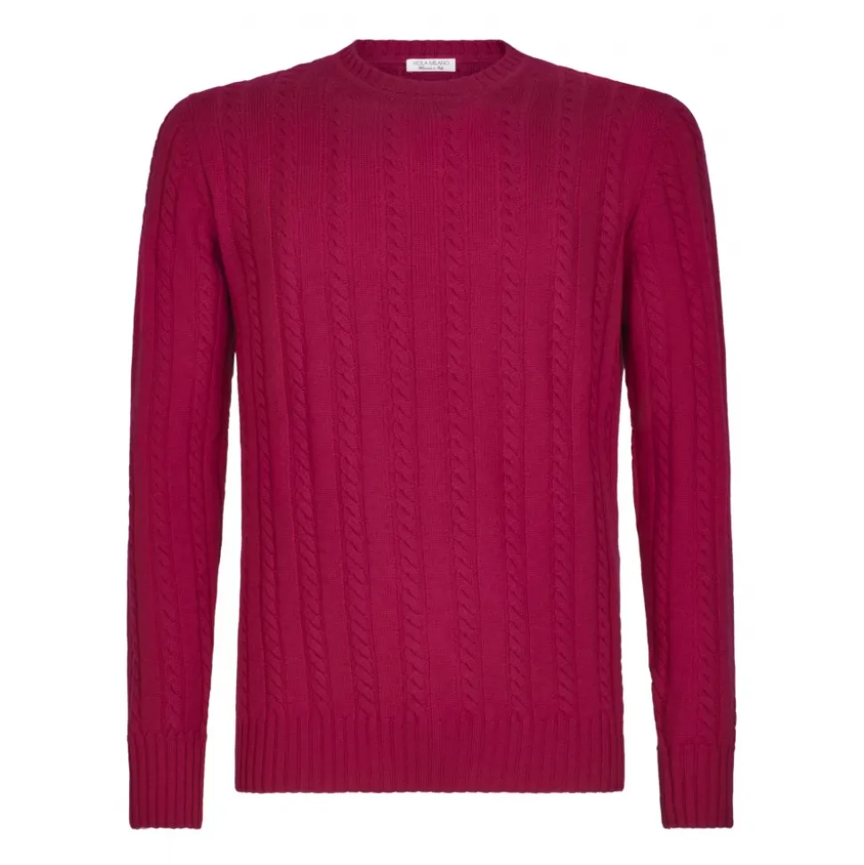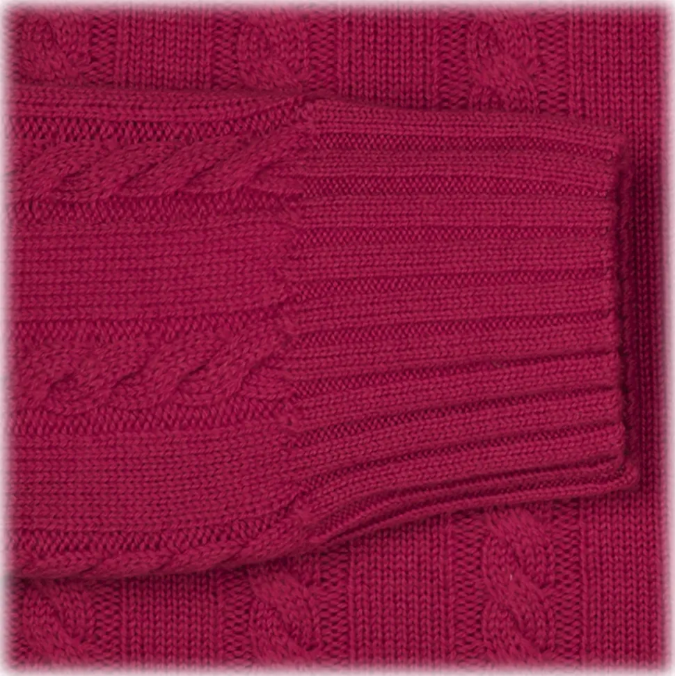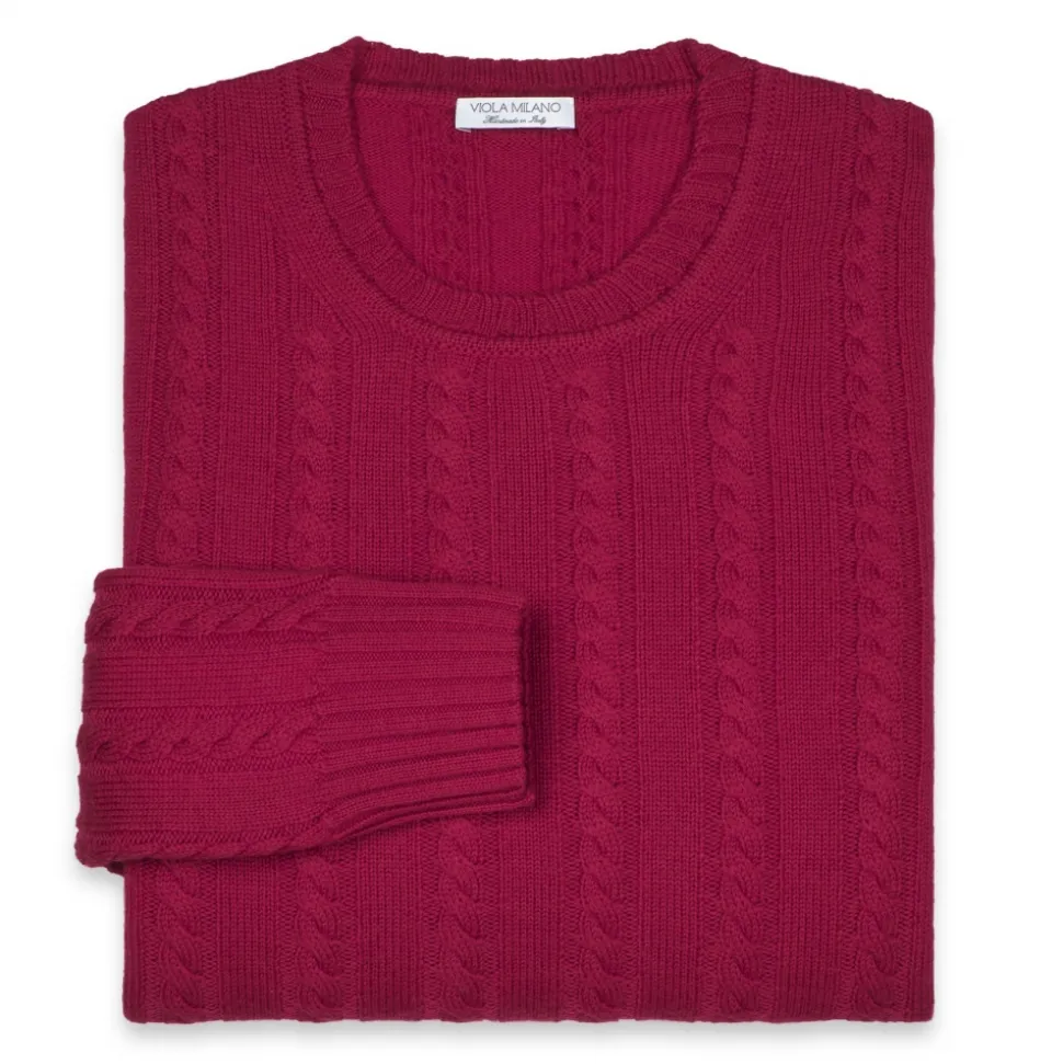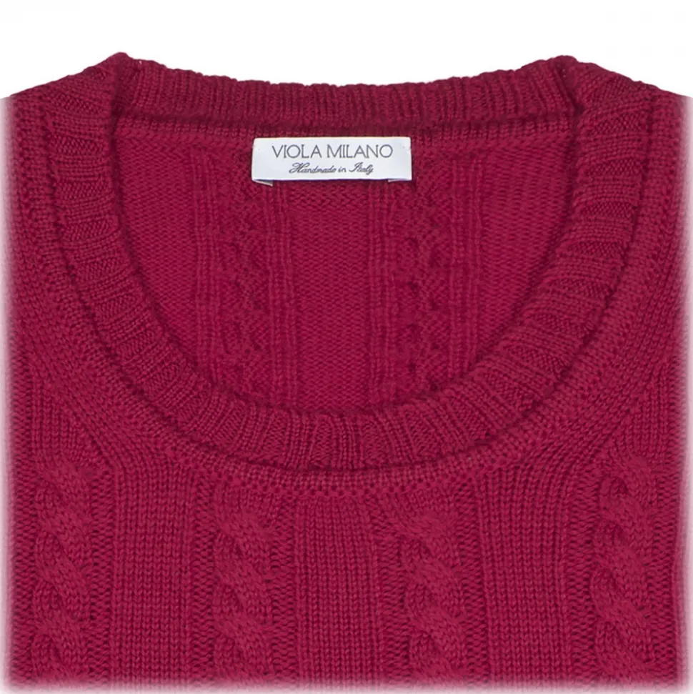 Viola Milano – Cable Knit Lambswool Sweater – Fuschia – Handmade in Italy – Luxury Exclusive Collection