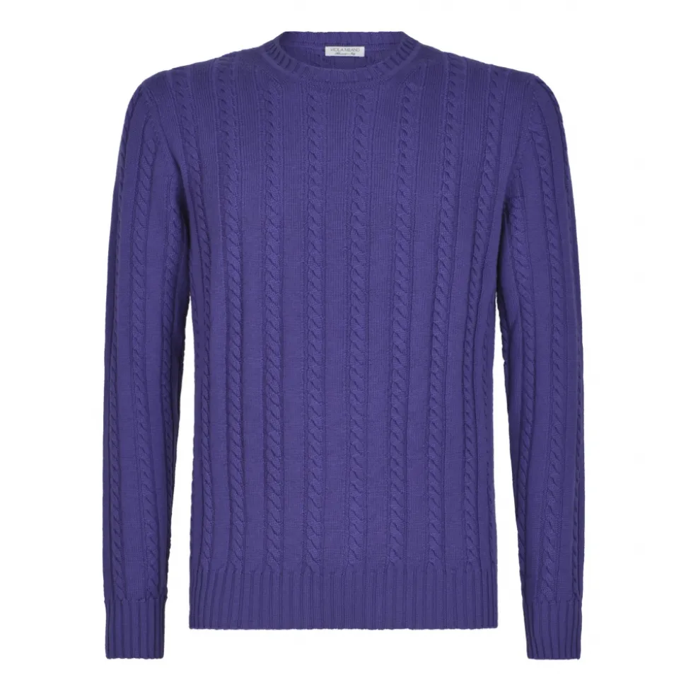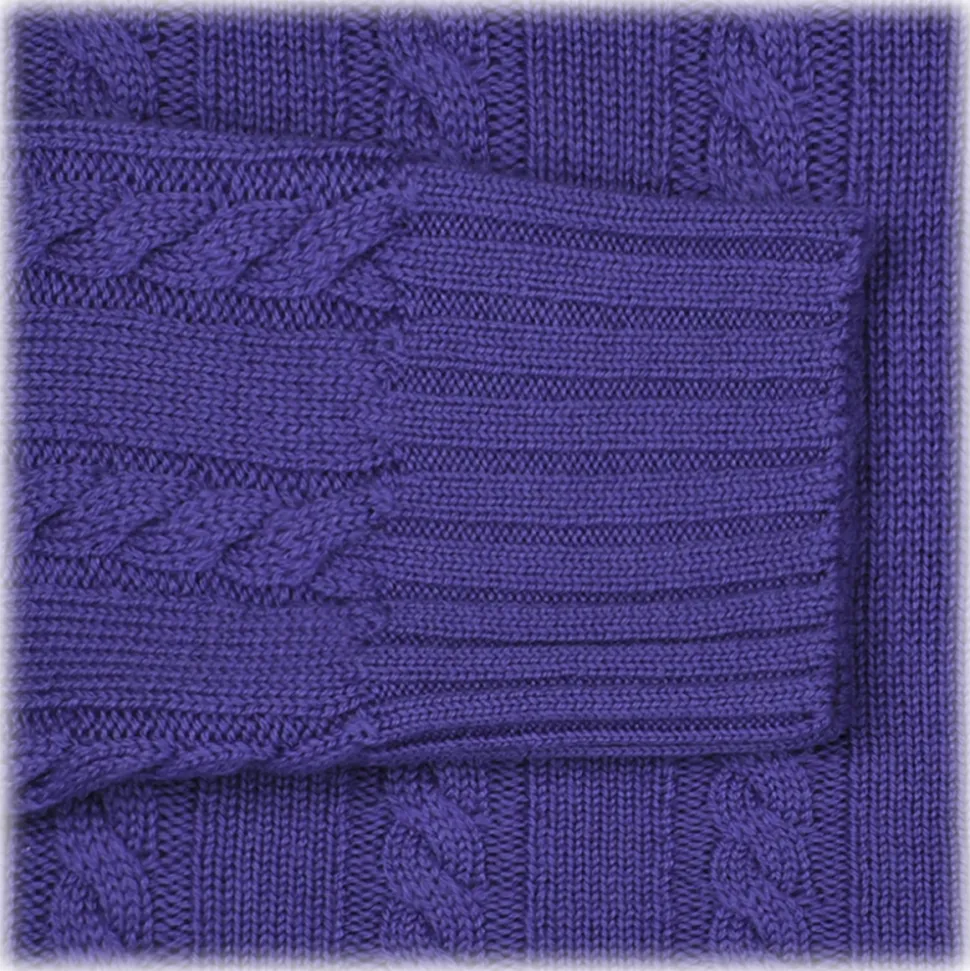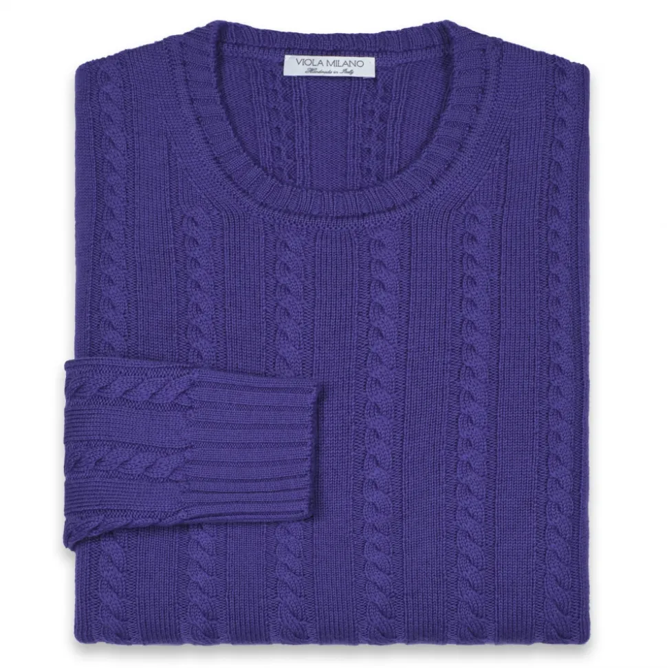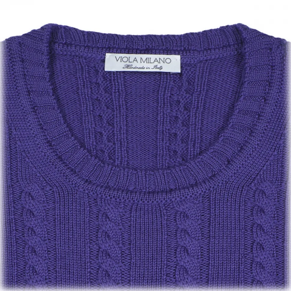 Viola Milano – Cable Knit Lambswool Sweater – Purple – Handmade in Italy – Luxury Exclusive Collection