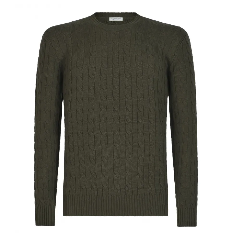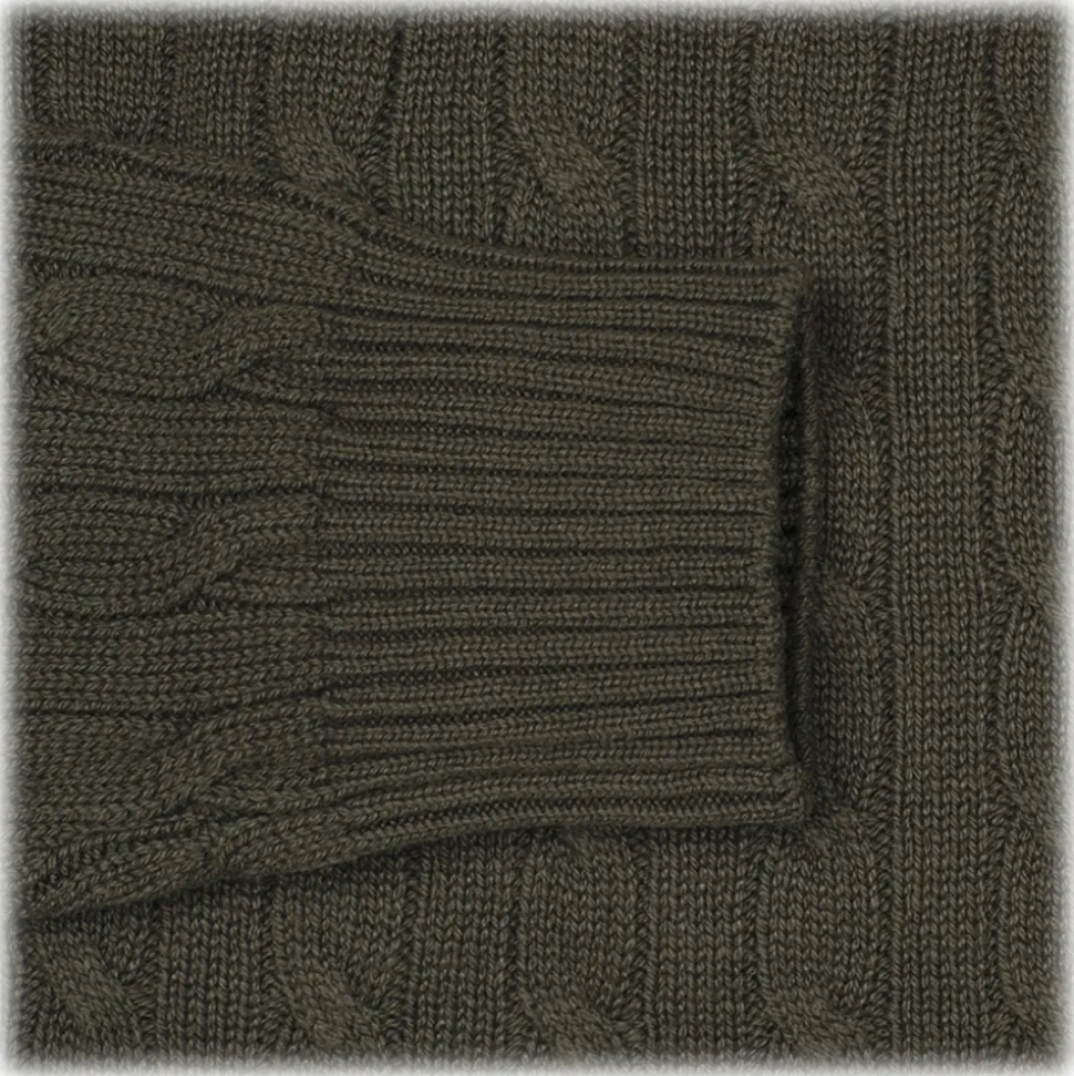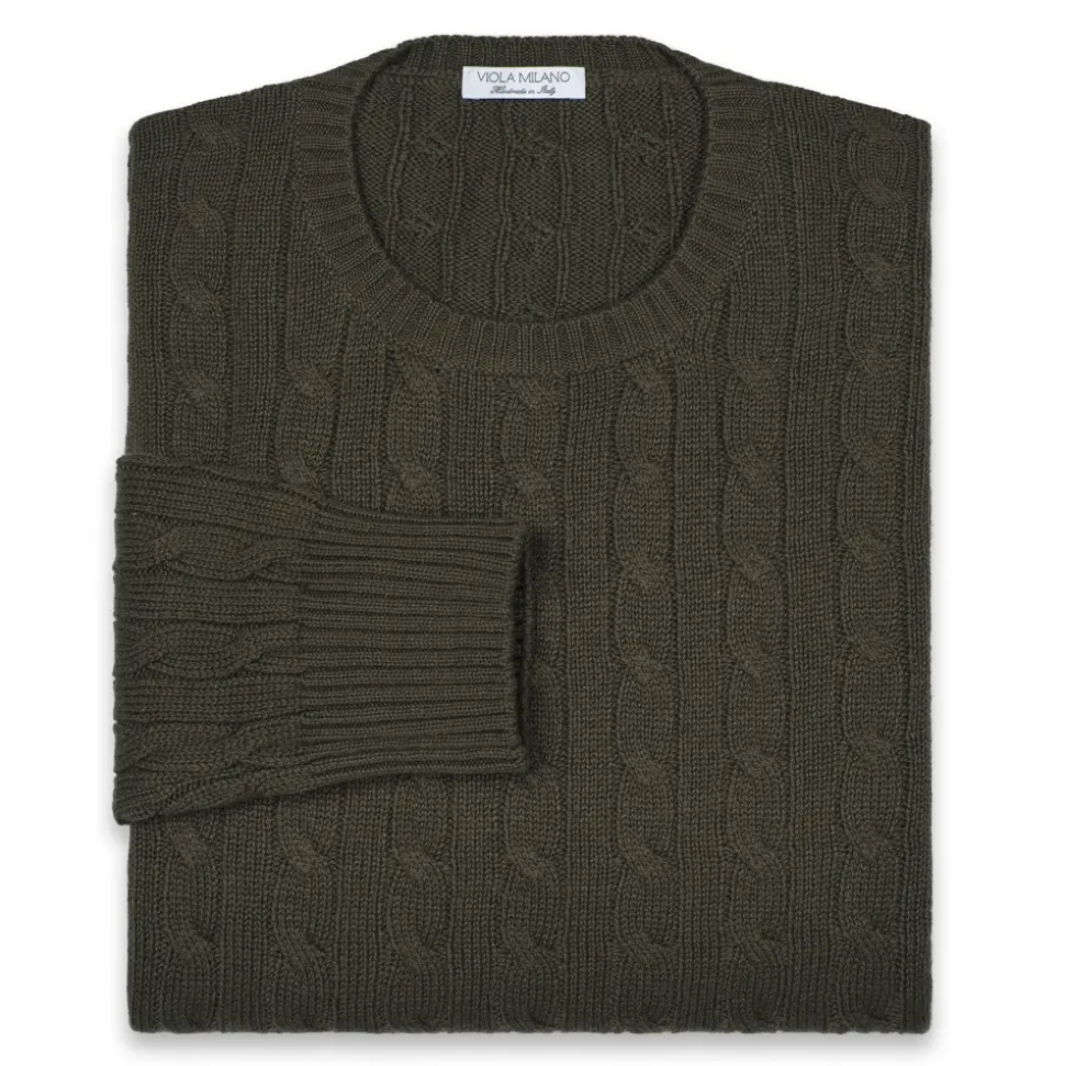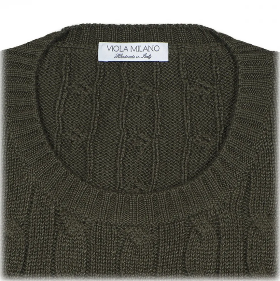 Viola Milano – Cable Knit Loro Piana Cashmere Sweater – Army Green – Handmade in Italy – Luxury Exclusive Collection