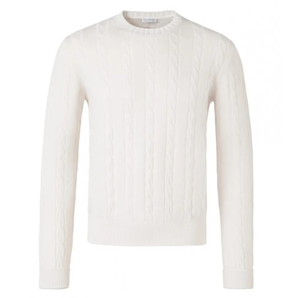 Viola Milano – Cable Knit Loro Piana Cashmere Sweater – Ivory – Handmade in Italy – Luxury Exclusive Collection