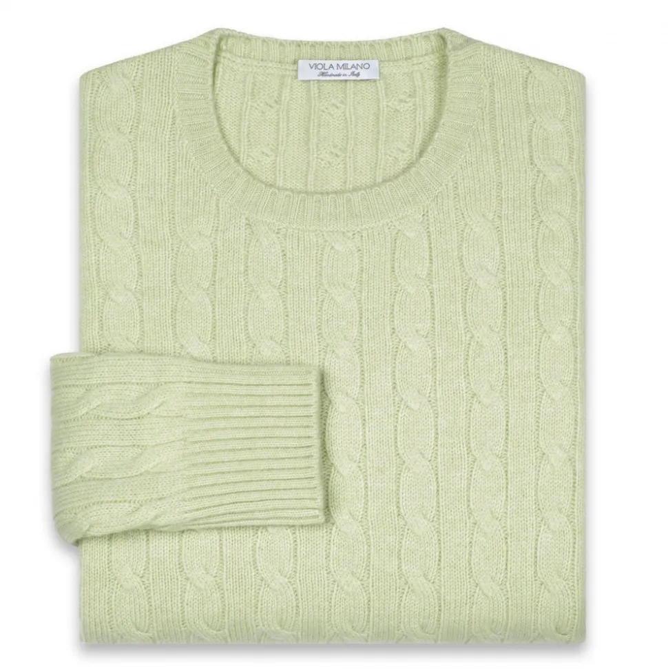 Viola Milano – Cable Knit Loro Piana Cashmere Sweater – Pistasch – Handmade in Italy – Luxury Exclusive Collection