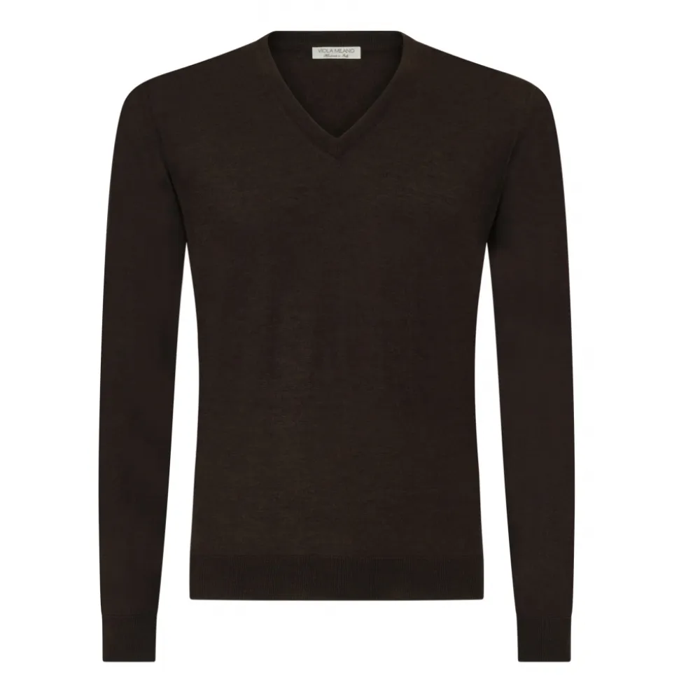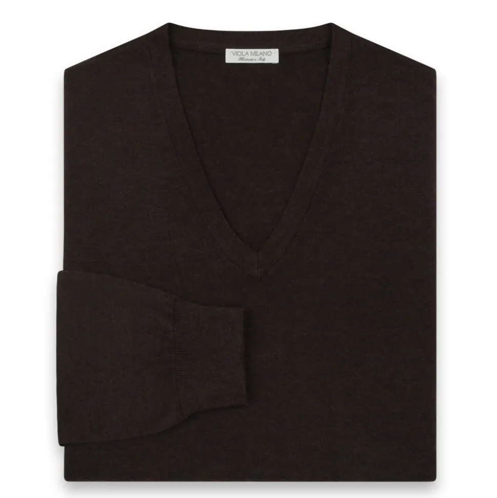 Viola Milano – Cashmere V-Neck Sweater – Brown – Handmade in Italy – Luxury Exclusive Collection