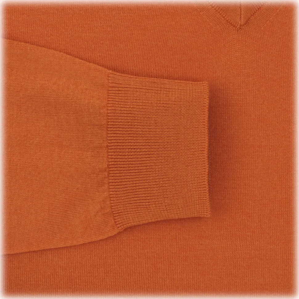 Viola Milano – Cashmere V-Neck Sweater – Orange – Handmade in Italy – Luxury Exclusive Collection