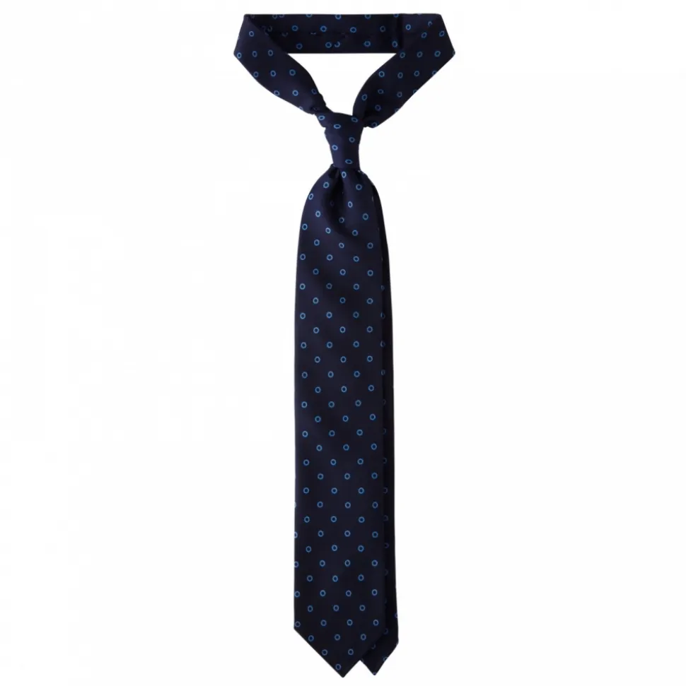 Viola Milano – Circle Printed Selftipped Italian Silk Tie – Navy/ Sea – Made in Italy – Luxury Exclusive Collection