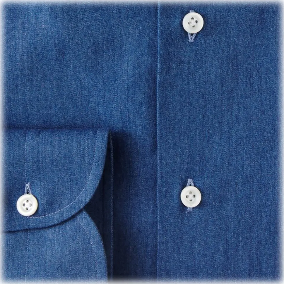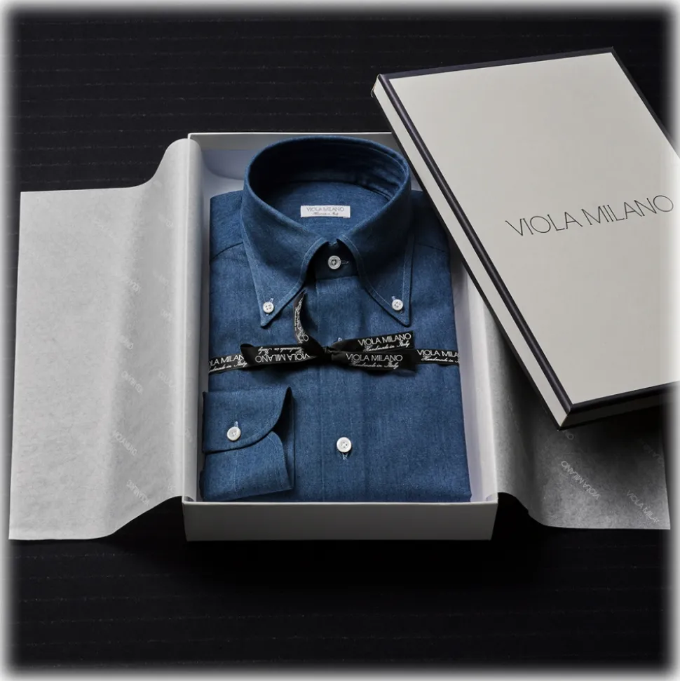 Viola Milano – Classic Denim Button-Down Collar Shirt – Denim – Handmade in Italy – Luxury Exclusive Collection