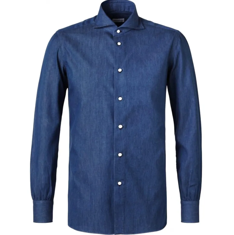 Viola Milano – Classic Denim Cut-Away Collar Dress Shirt – Denim – Handmade in Italy – Luxury Exclusive Collection