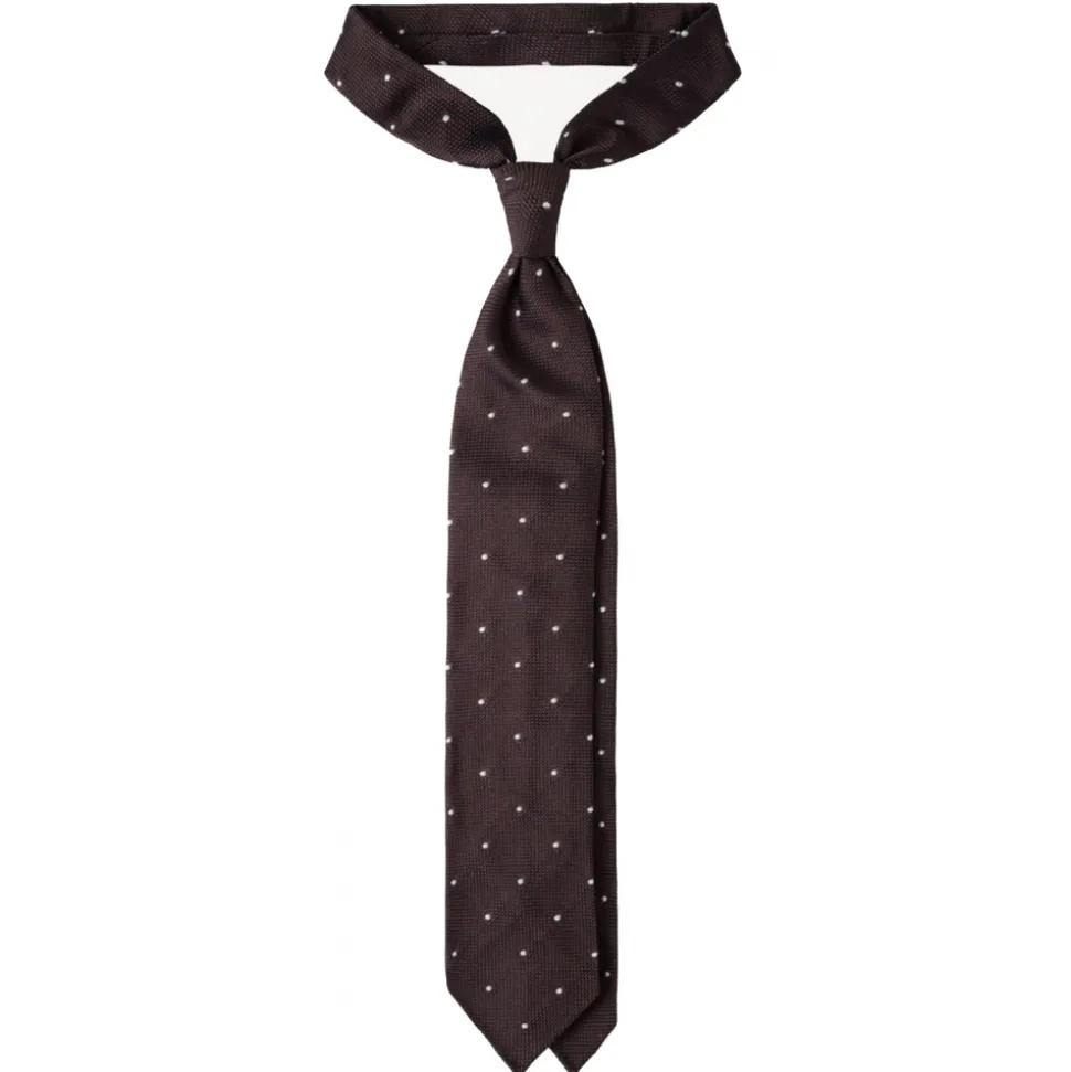 Viola Milano – Classic Polka Dot 3-Fold Grenadine Tie – Brown/White – Handmade in Italy – Luxury Exclusive Collection