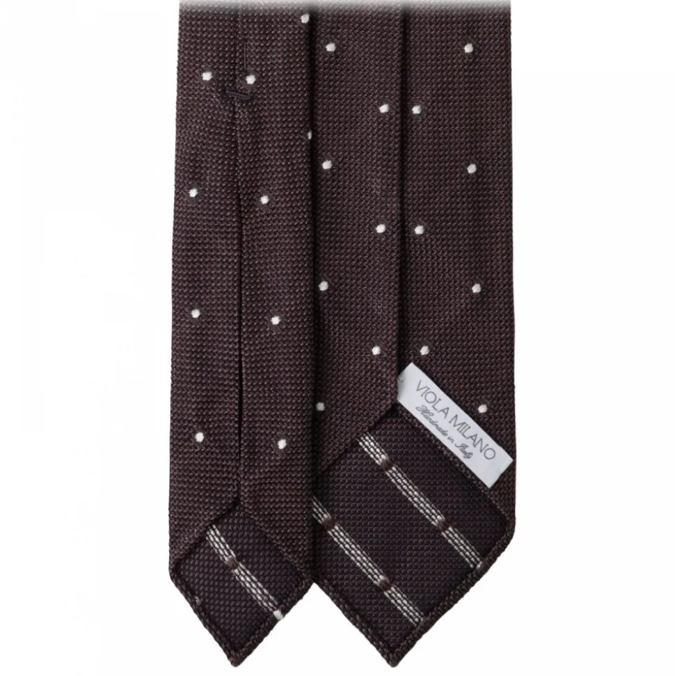 Viola Milano – Artisan Chain Selftipped Italian Silk Tie – Brown / White- Made in Italy – Luxury Exclusive Collection