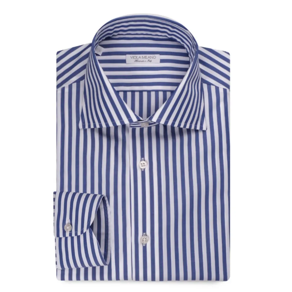Viola Milano – Como Stripe Shirt – Light Blue and White – Handmade in Italy – Luxury Exclusive Collection