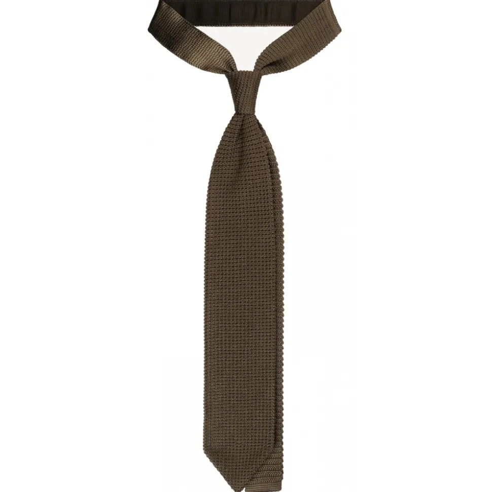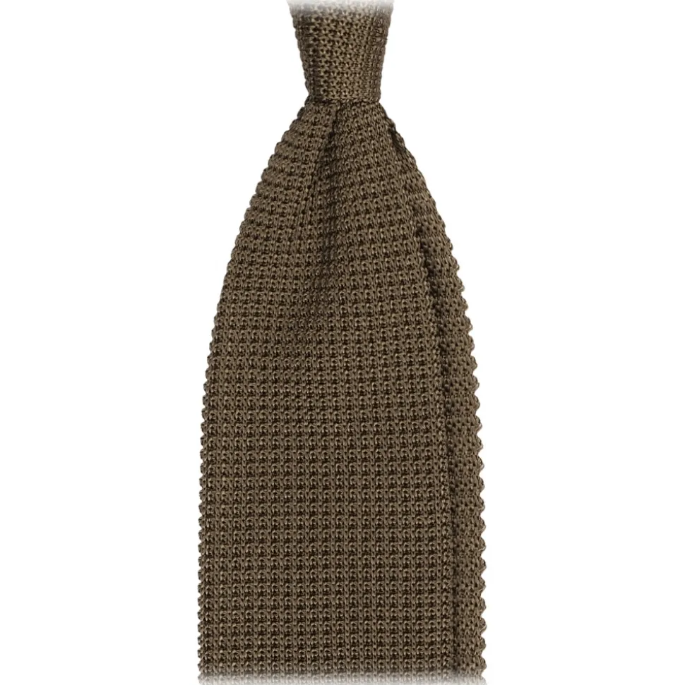 Viola Milano – Knitted Limited Label V-End Silk Tie – Olive – Handmade in Italy – Luxury Exclusive Collection