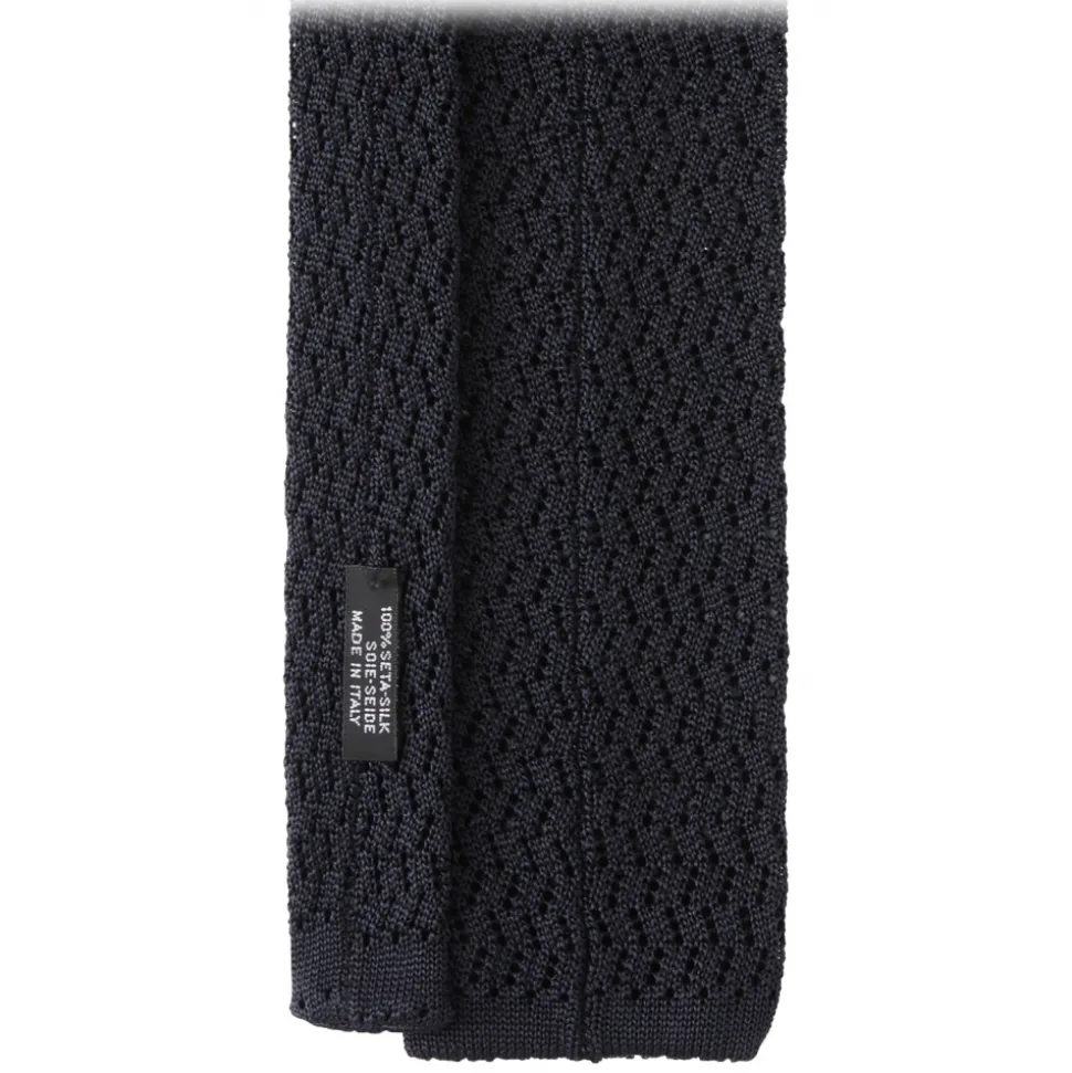 Viola Milano – Knitted Zig Zag Pattern Silk Tie – Midnight Navy – Handmade in Italy – Luxury Exclusive Collection