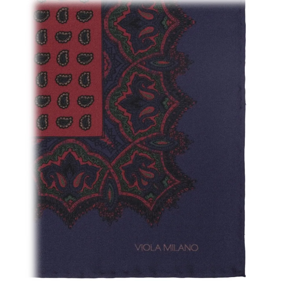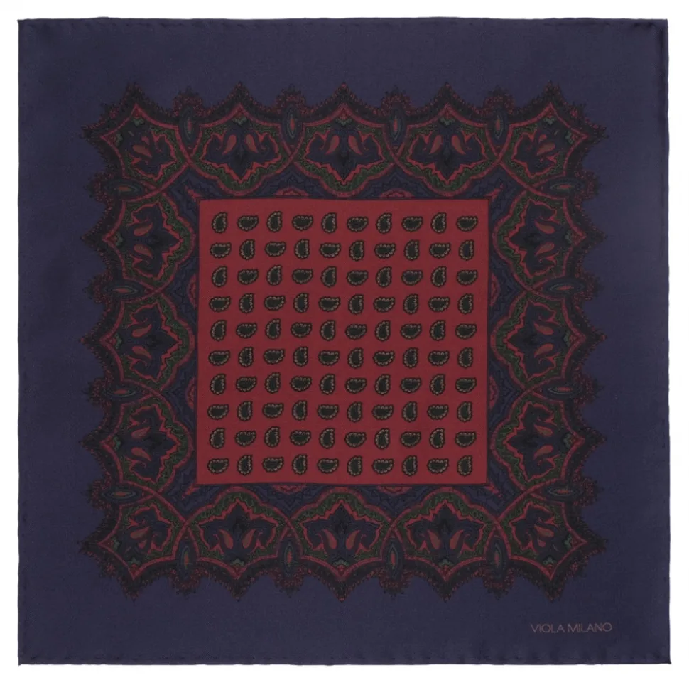 Viola Milano – Luxury Archive Printed Silk Pocket Square – Sea/Coral Paisley – Handmade in Italy – Luxury Exclusive Collection
