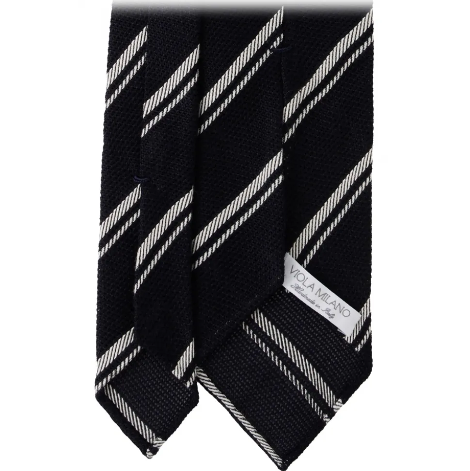 Viola Milano – Multi Stripe 3-Fold Grenadine Tie – Navy/White – Handmade in Italy – Luxury Exclusive Collection