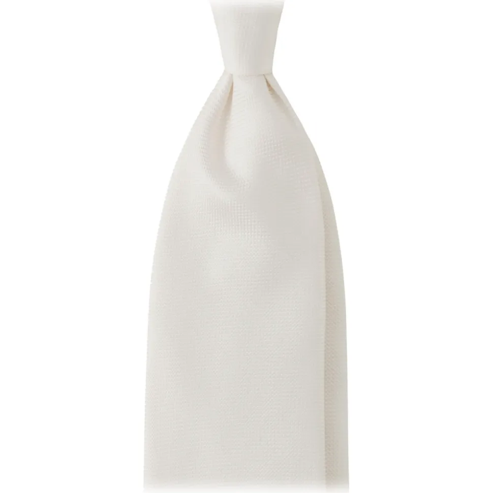 Viola Milano – Solid Woven Selftipped Silk Tie – Ivory – Handmade in Italy – Luxury Exclusive Collection