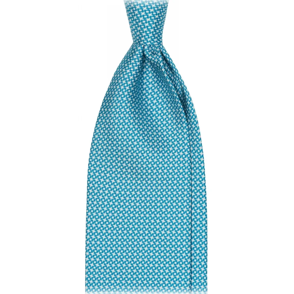 Viola Milano – Star Pattern Selftipped Italian Silk Tie – Turquoise – Handmade in Italy – Luxury Exclusive Collection