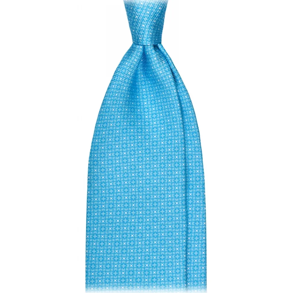 Viola Milano – Star Pattern Selftipped Silk Tie – Sea – Handmade in Italy – Luxury Exclusive Collection