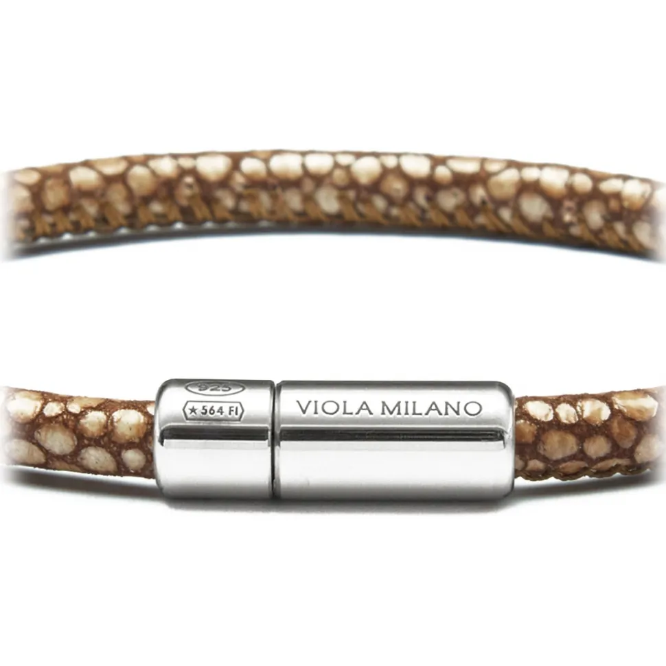 Viola Milano – Stingray Genuine Italian Leather Bracelet – Coffee – Handmade in Italy – Luxury Exclusive Collection