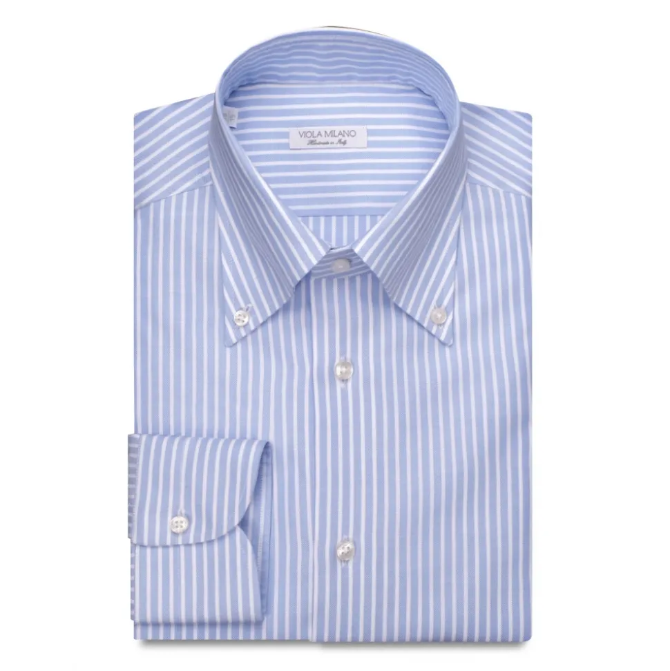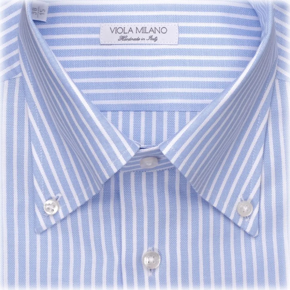 Viola Milano – Stripe American Oxford Shirt – Sea and White – Handmade in Italy – Luxury Exclusive Collection