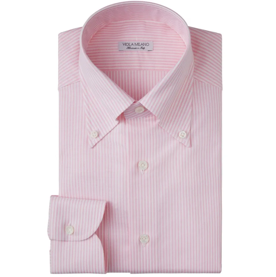 Viola Milano – Stripe American Oxford Button-Down Collar Dress Shirt – Pink/White – Handmade in Italy – Luxury Exclusive Collection