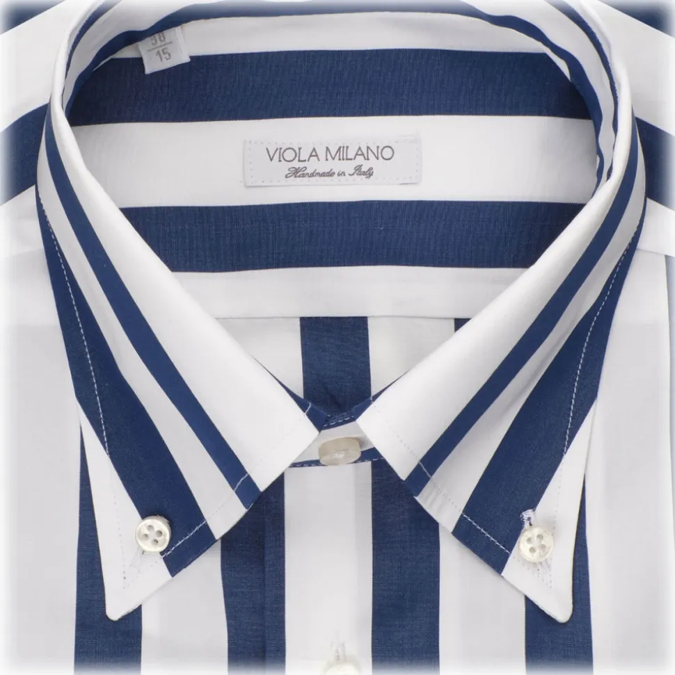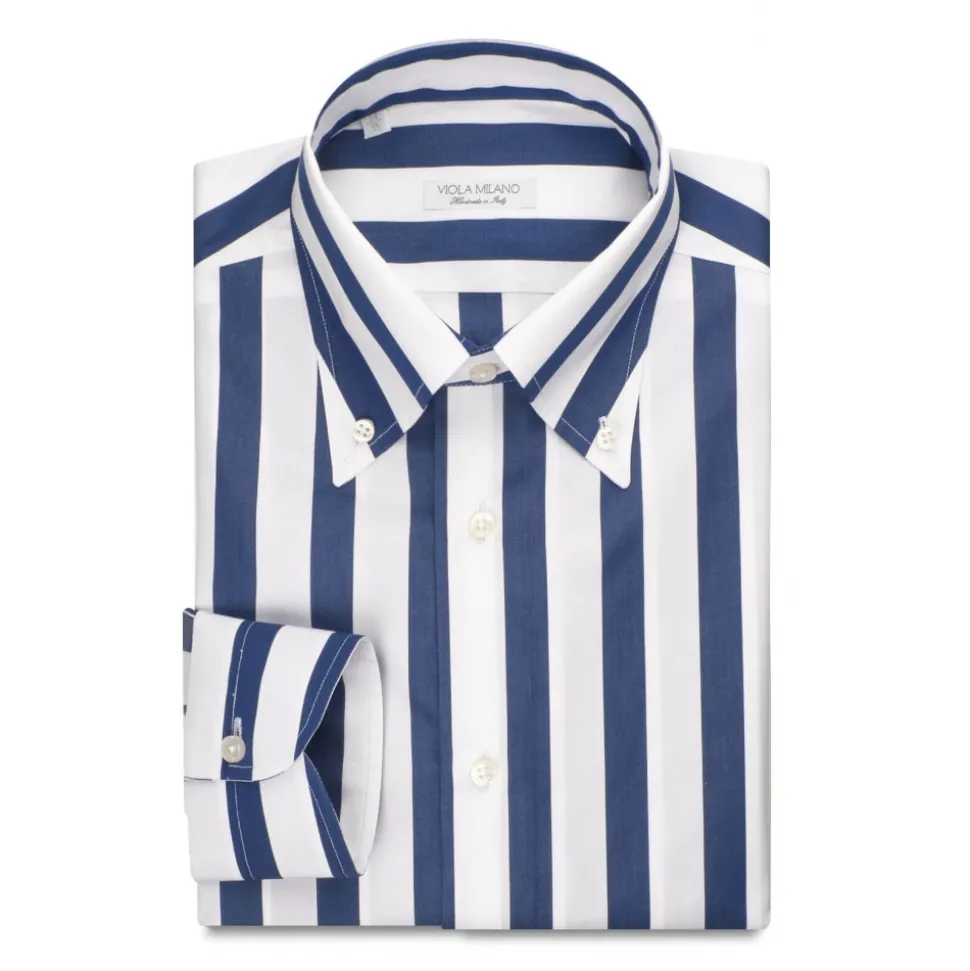 Viola Milano – Stripe Shirt – Navy and White – Handmade in Italy – Luxury Exclusive Collection