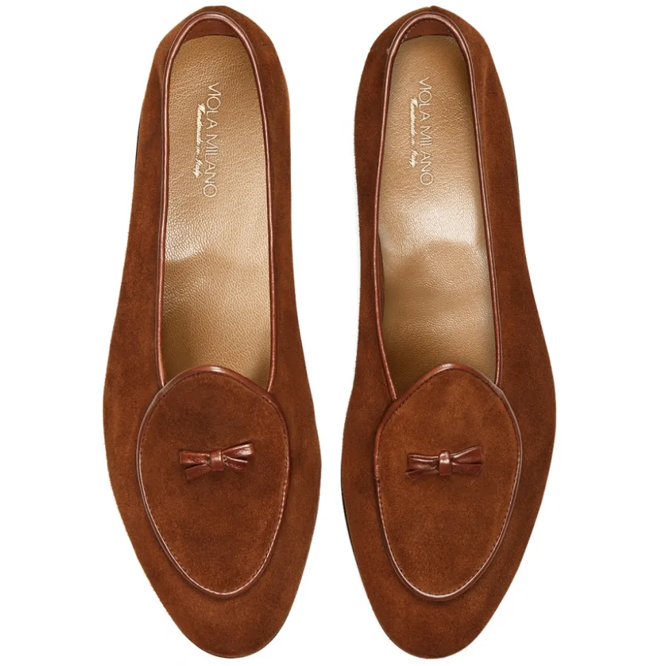Viola Milano – Unlined Belgian Suede Loafer – Polo Brown – Handmade in Italy – Luxury Exclusive Collection