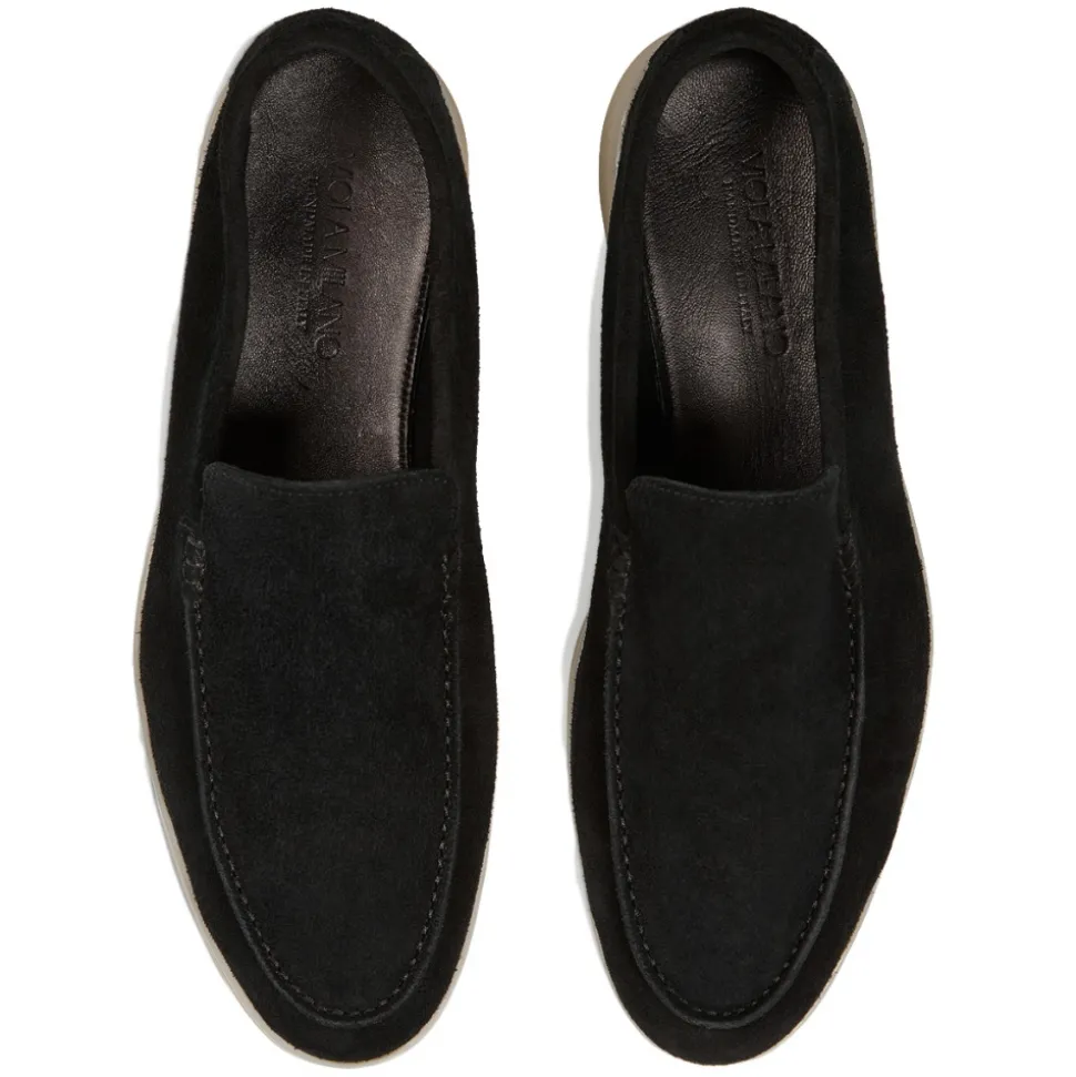 Viola Milano – Unlined Capri Suede Loafer – Black – Handmade in Italy – Luxury Exclusive Collection