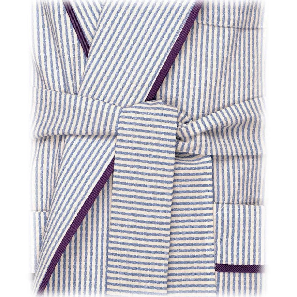 Viola Milano – Unlined Loro Piana Seersucker Dressing Gown – Sea/White – Handmade in Italy – Luxury Exclusive Collection