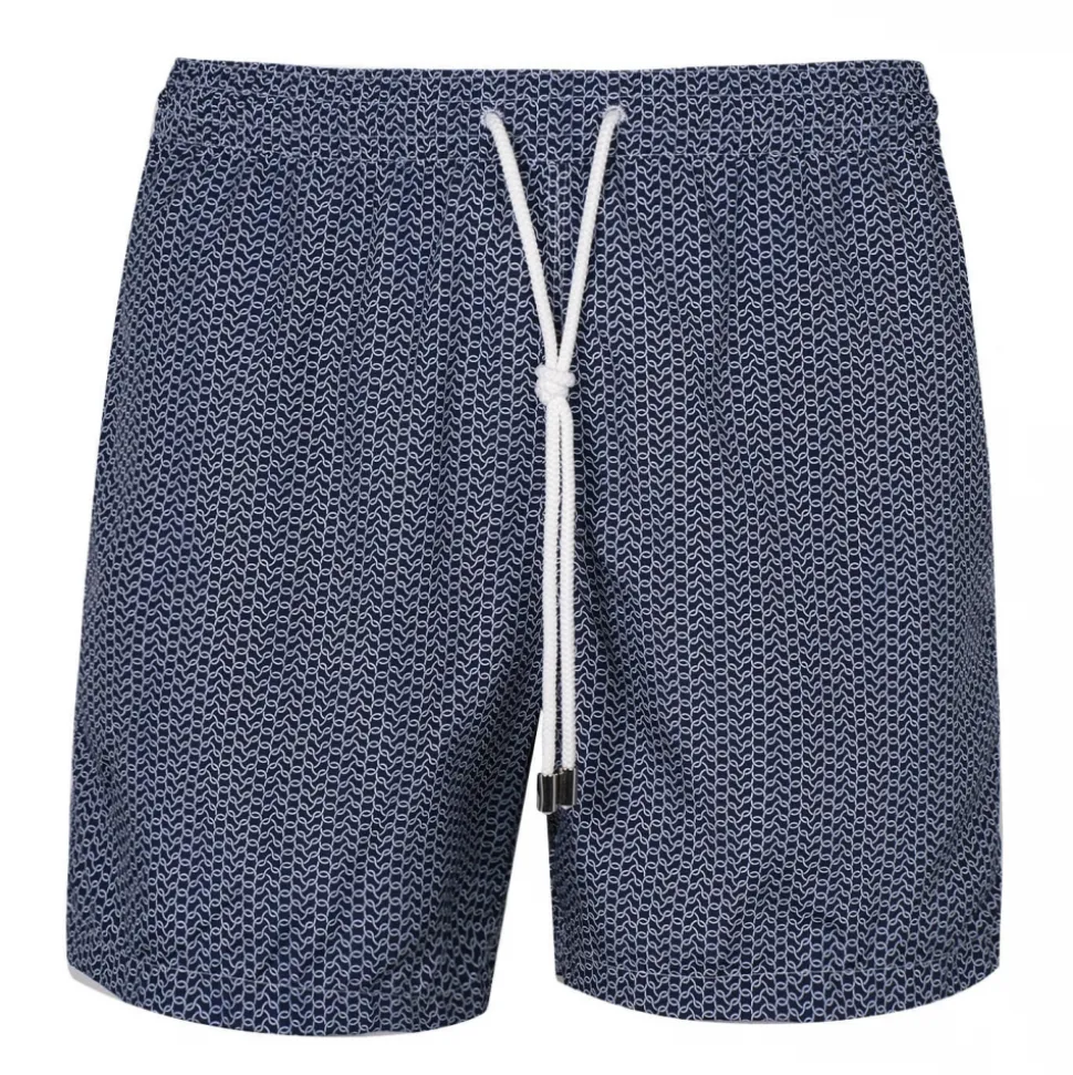 Viola Milano – Wave Pattern Printed Swimtrunks – Navy and White – Handmade in Italy – Luxury Exclusive Collection