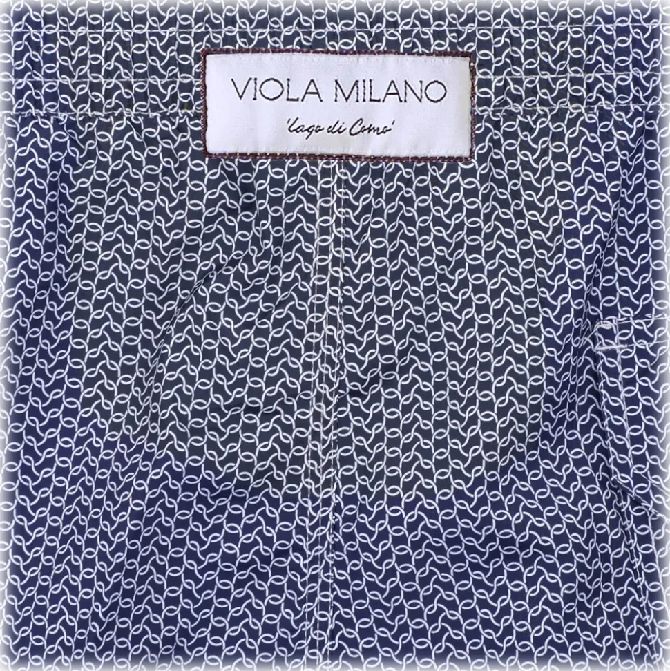 These Viola Milano swim quality quick drying swim shorts are a detailed take on the Italian swim trunks. They are Made in Italy and have a drawstring waist with supportive mesh lining for a comfortable wear.