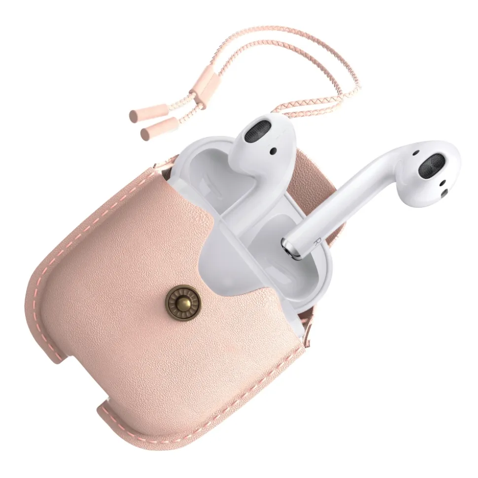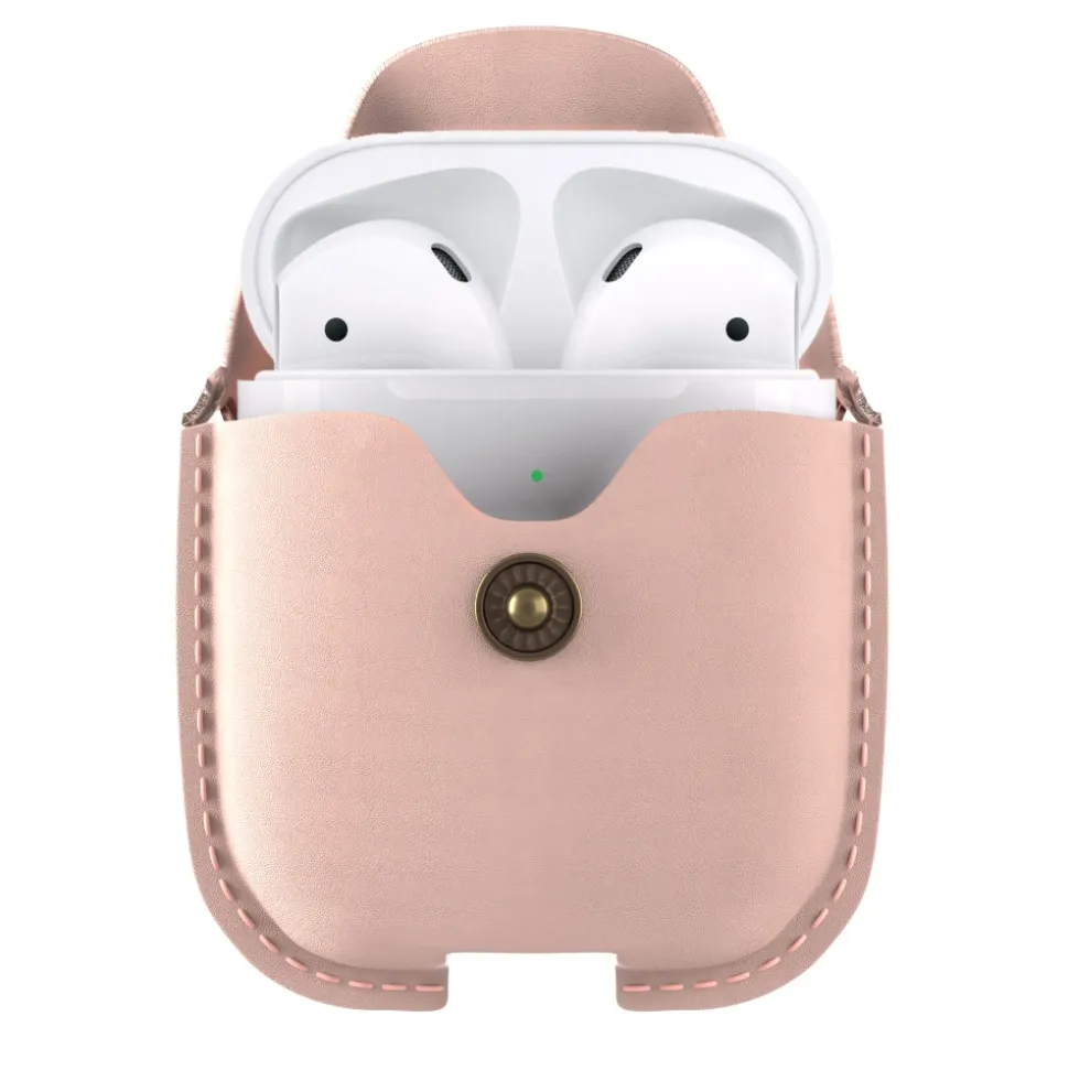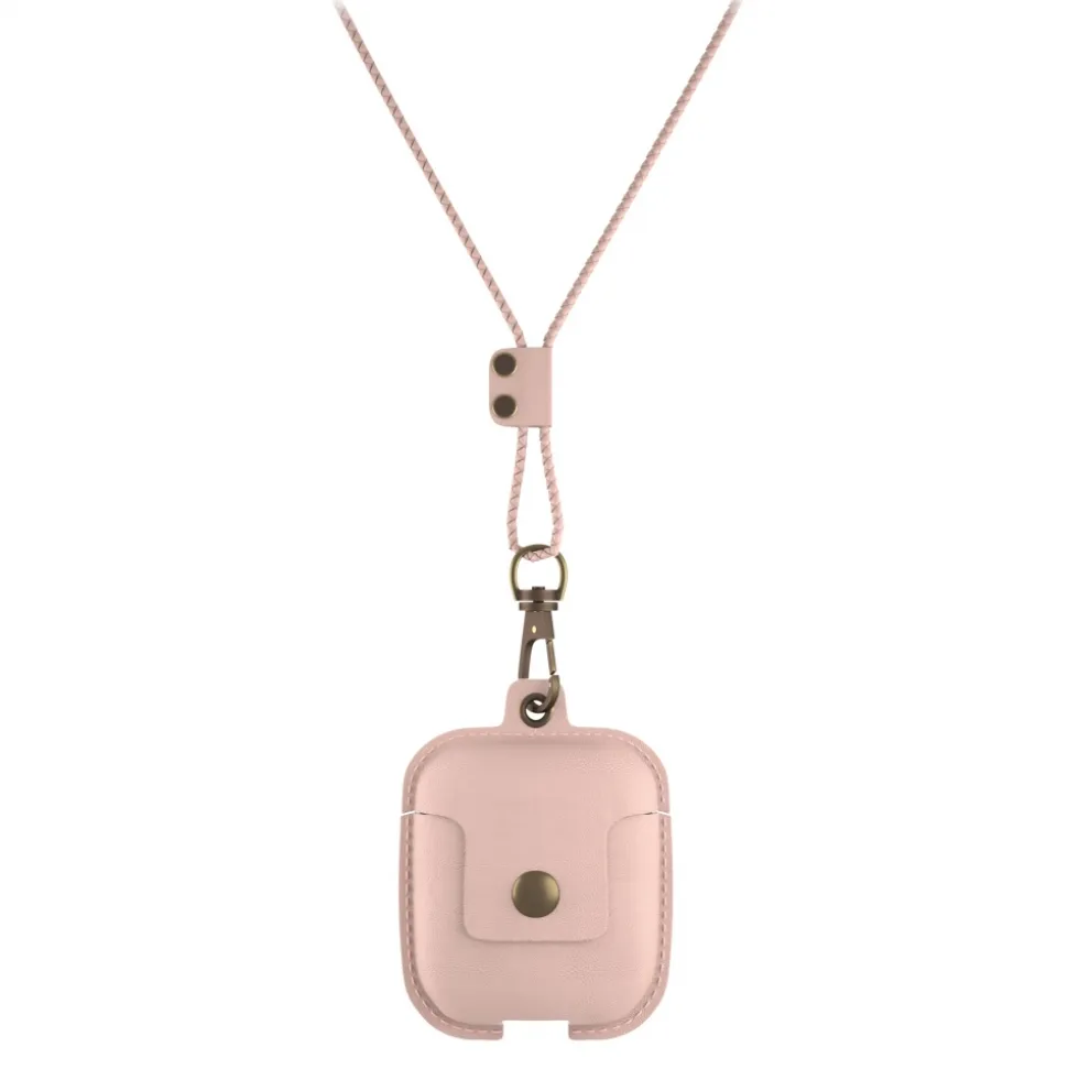 Woodcessories – AirCase – Premium AirPod Leather Necklace Eco Case – Rose Nude – QI Wireless Charging Technology – High Quality