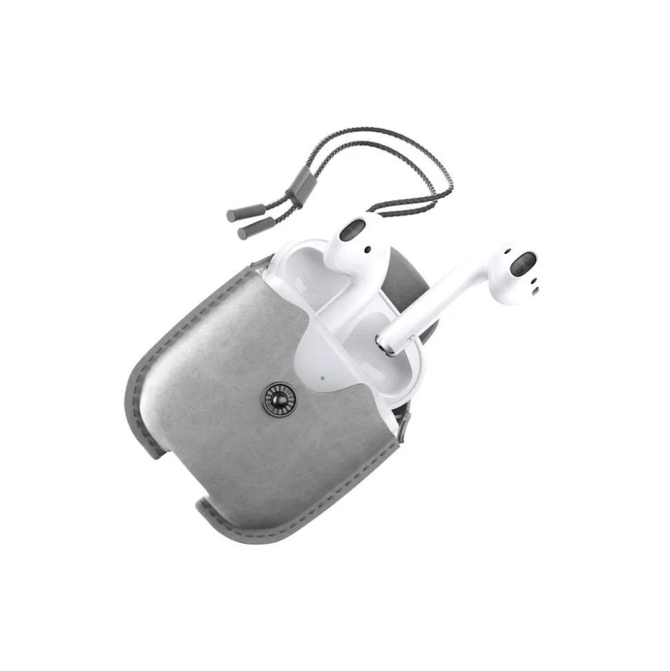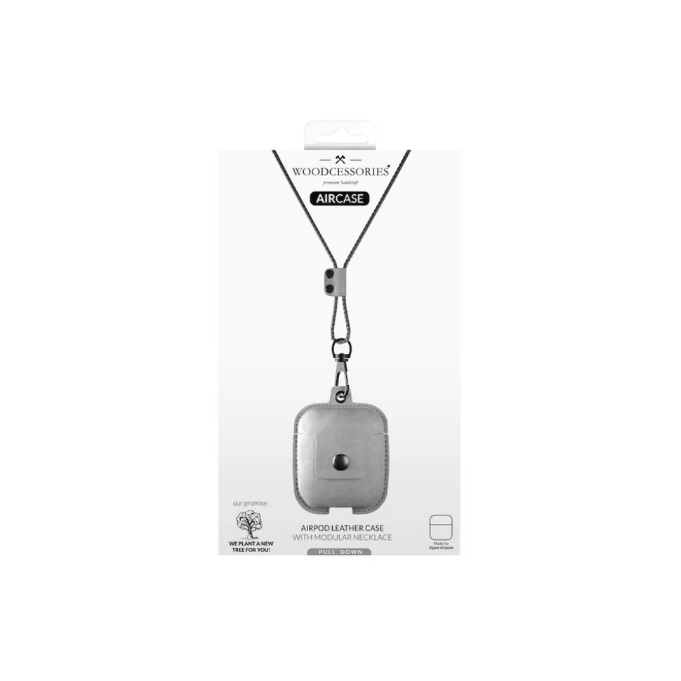 Woodcessories – AirCase – Premium AirPod Leather Necklace Eco Case – Stone Grey – QI Wireless Charging Technology – High Quality
