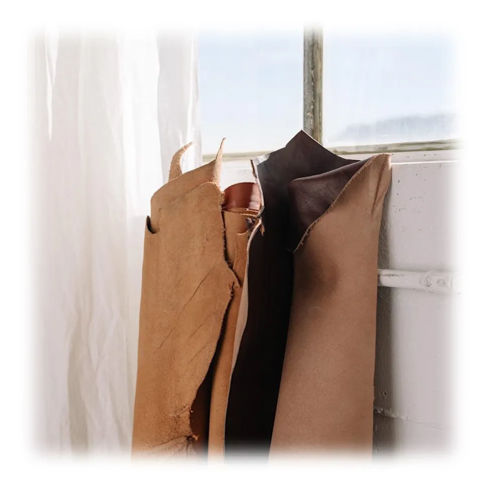 Not at all. We refuse the use of artificial chemicals when it comes to our production processes and only treat our leather with vegetable tanning. That means that only natural substances such as plant fibres and tree bark are used. This process does end up taking much longer than chemical tanning but it’s worth it! At the end the leather is much more durable and creats a beautiful patina over time. And it protects the environment of course!