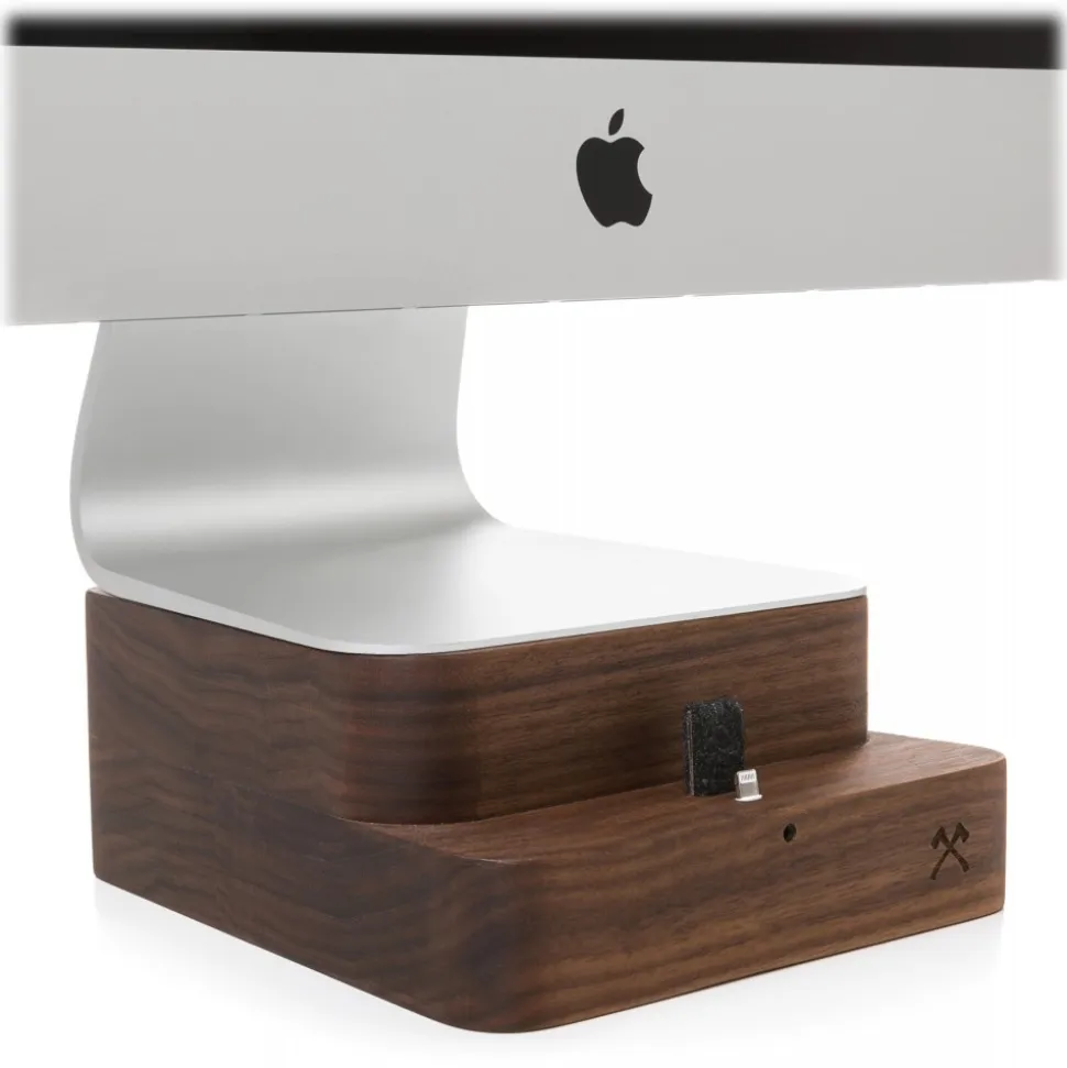 You want to work even more efficient? Then try our extended version of the “”EcoFoot”” Stand. By attaching a innovative dock in front of the wooden stand, we created space for a charging station suitable for all Lightning iPhones. Just route your original Apple Lightning cable through the solid wood, fixed it at your preferred height & charge your iPhone directly in front of your iMac monitor. Our handmade Dock is a real innovation and it is the first iMac Stand with an integrated iPhone dockingstation. You can work on your Mac and at the same time charge and handle your iPhone. Ergonomic, space-saving and comfortable to use.