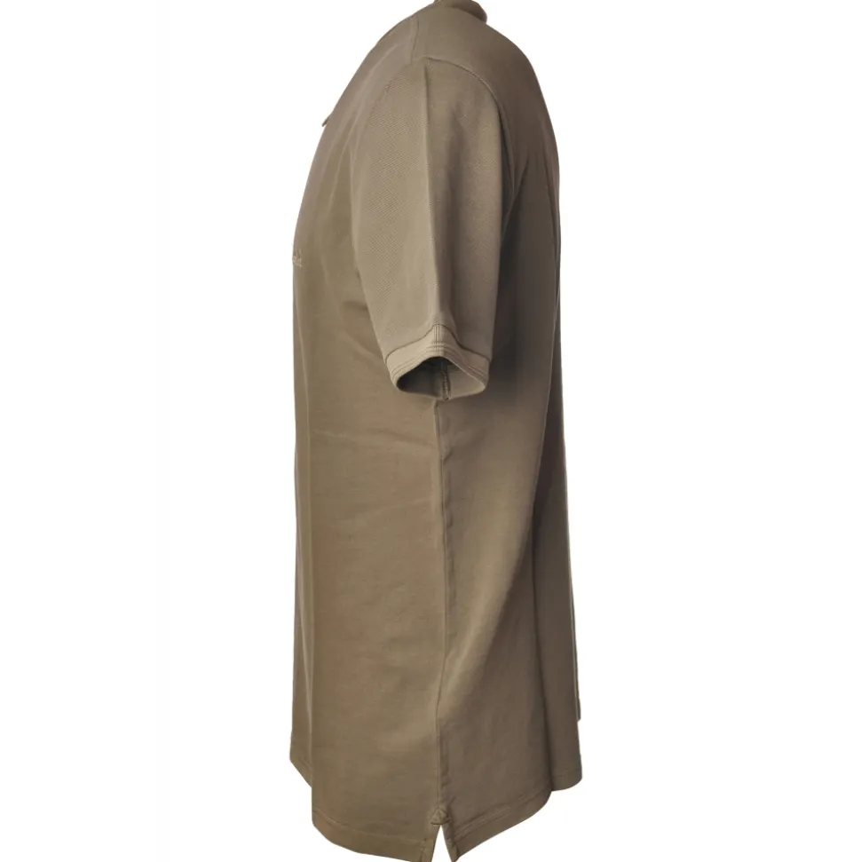 Short-sleeved polo shirt with embroidered company logo on the upper left front side, entirely made in garment dyed.