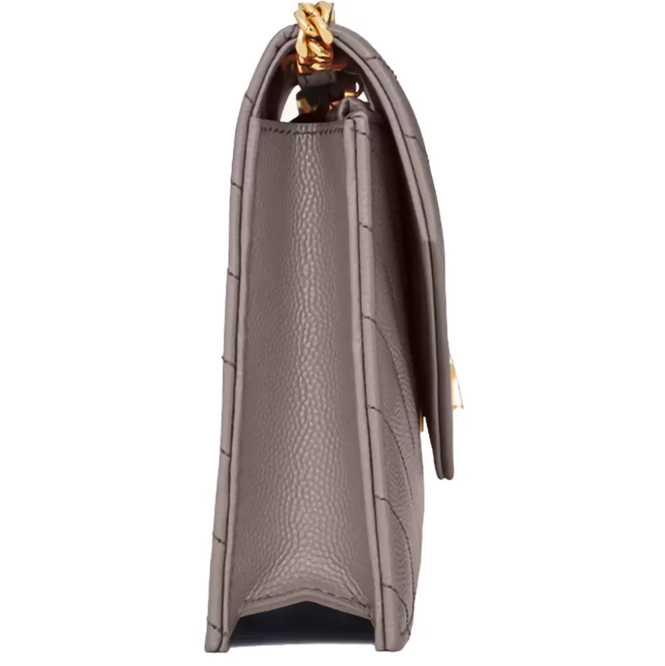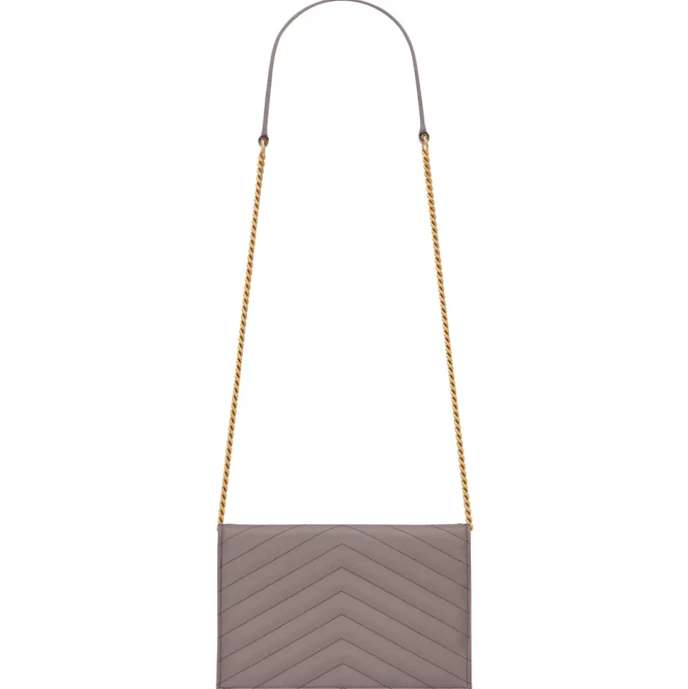 Yves Saint Laurent – Cassandre Envelope Chain Wallet in Grain De Poudre Leather – Fog – Saint Laurent Exclusive Collection