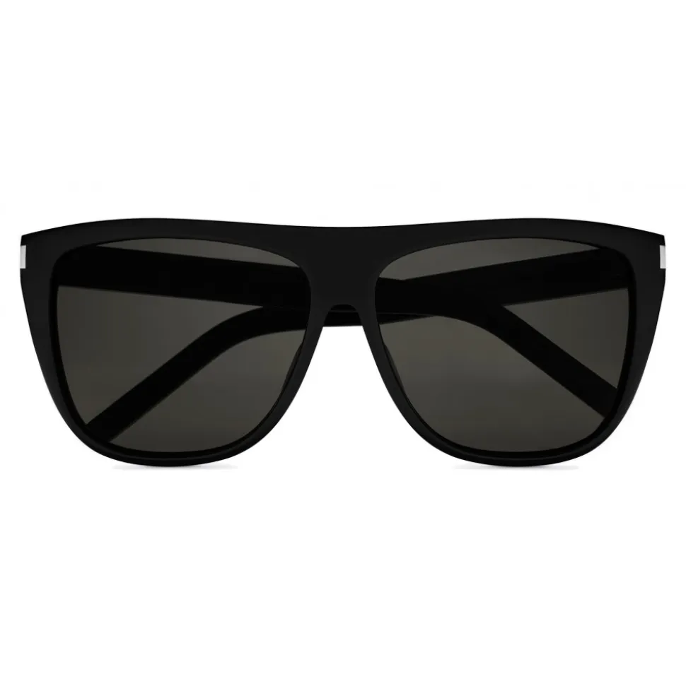 Saint Laurent New Wave SL 1 sunglasses with thick frame and flat top edge, with nylon lenses.
